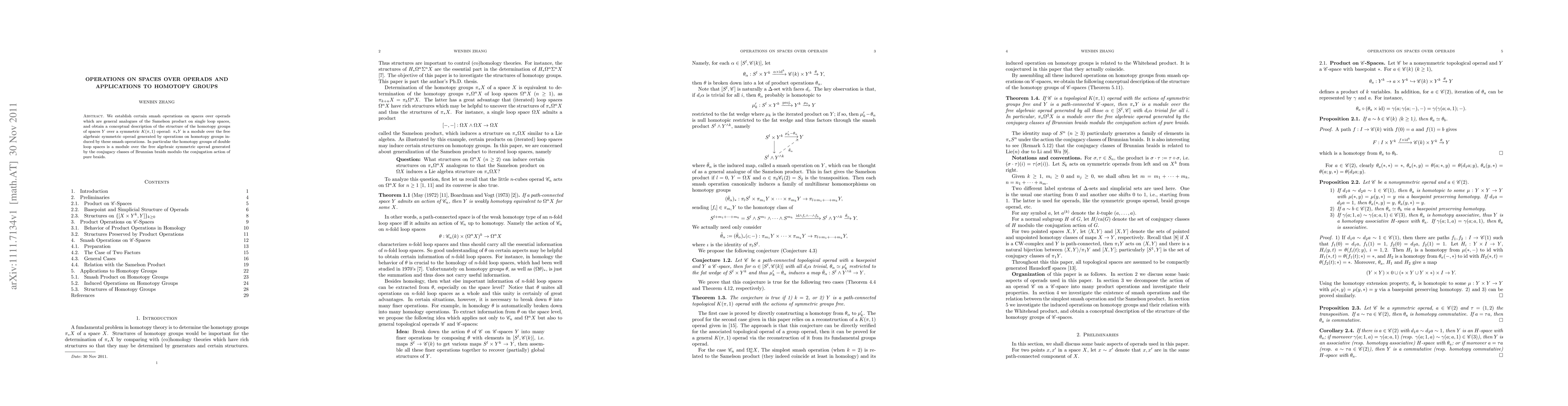 This paper introduces smash operations on spaces over operads, providing a conceptual framework for understanding the homotopy groups of these spaces. Specifically, it shows that the homotopy groups of spaces over a symmetric $K(\pi,1)$ operad form a module over a free algebraic symmetric operad, with applications particularly noted for the homotopy groups of double loop spaces.