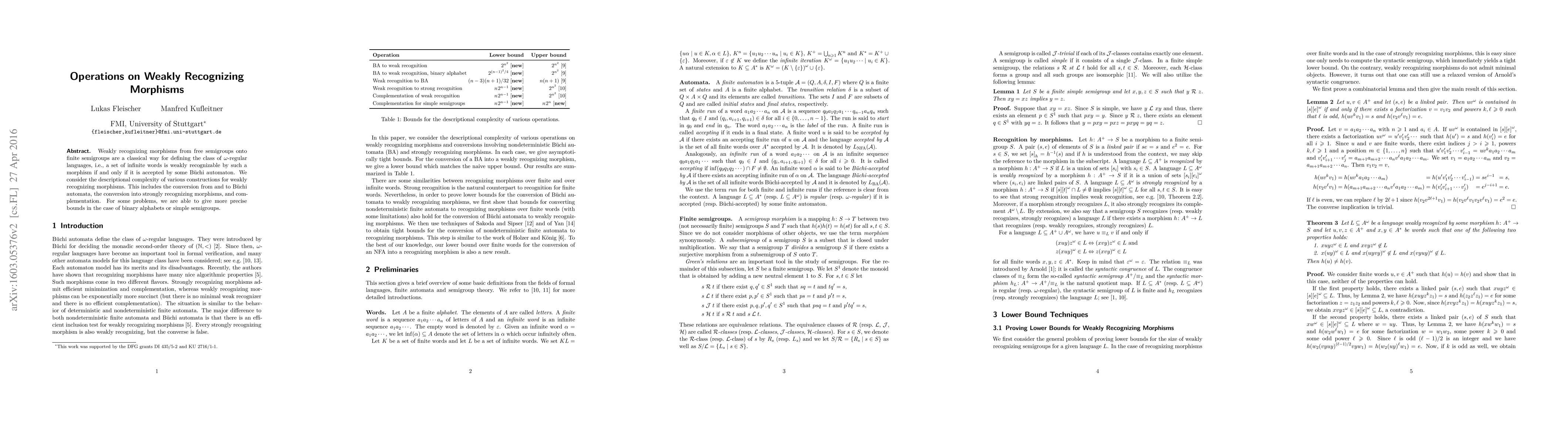 This paper explores the descriptional complexity of weakly recognizing morphisms from free semigroups to finite semigroups, which define omega-regular languages. It examines conversions to and from Büchi automata, transformations into strongly recognizing morphisms, and complementation, providing tighter bounds for binary alphabets and simple semigroups.