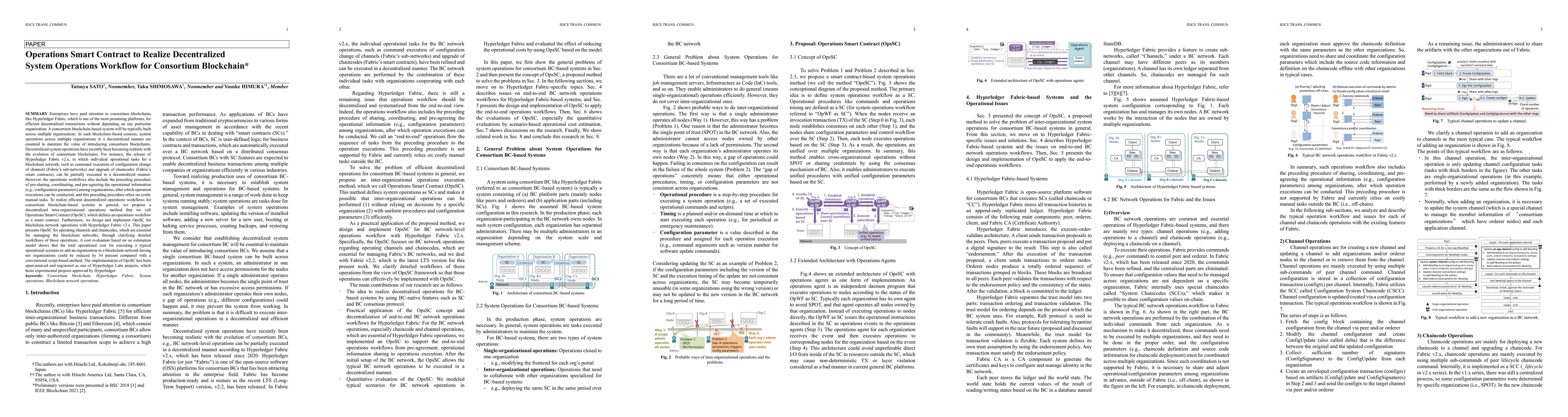 This paper proposes an Operations Smart Contract (OpsSC) to streamline decentralized system operations across multiple organizations in consortium blockchains like Hyperledger Fabric. The OpsSC method automates workflows for blockchain network operations, reducing reliance on costly manual coordination processes.