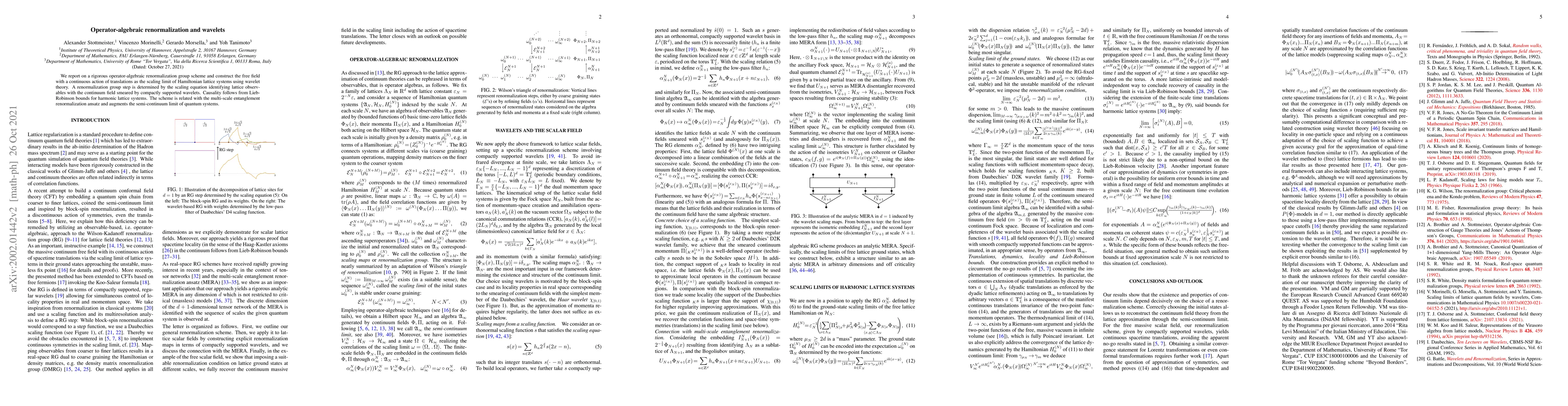 We report on a rigorous operator-algebraic renormalization group scheme and construct the continuum free field as the scaling limit of Hamiltonian lattice systems using wavelet theory. A renormalization group step is determined by the scaling equation identifying lattice observables with the continuum field smeared by compactly supported wavelets. Causality follows from Lieb-Robinson bounds for harmonic lattice systems. The scheme is related with the multi-scale entanglement renormalization ansatz and augments the semi-continuum limit of quantum systems.