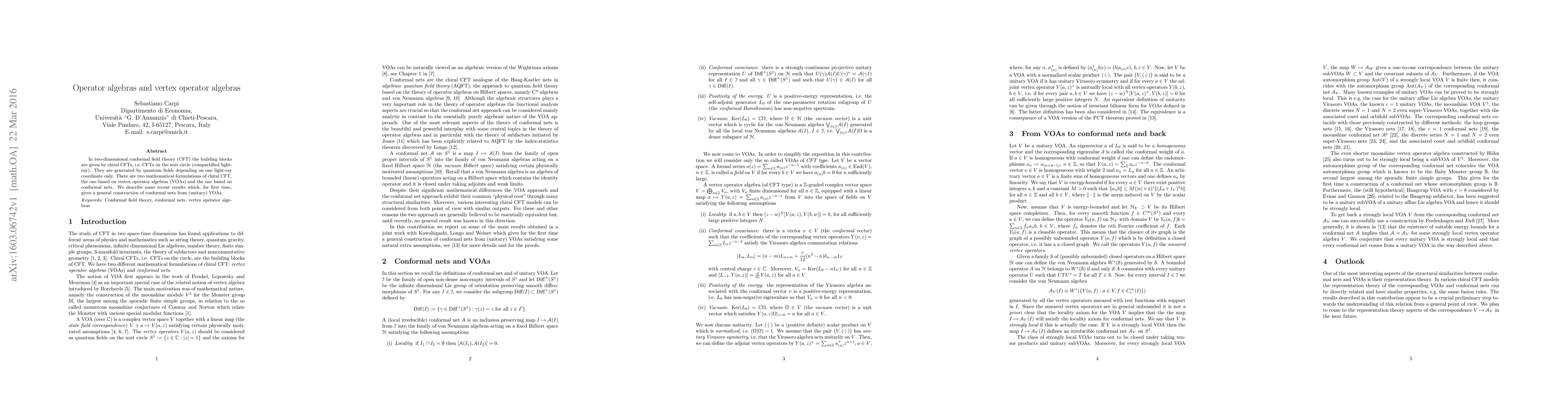 In two-dimensional conformal field theory (CFT) the building blocks are given by chiral CFTs, i.e.~CFTs on the unit circle (compactified light-ray). They are generated by quantum fields depending on one light-ray coordinate only. There are two mathematical formulations of chiral CFT, the one based on vertex operator algebras (VOAs) and the one based on conformal nets. We describe some recent results which, for first time, gives a general construction of conformal nets from (unitary) VOAs.