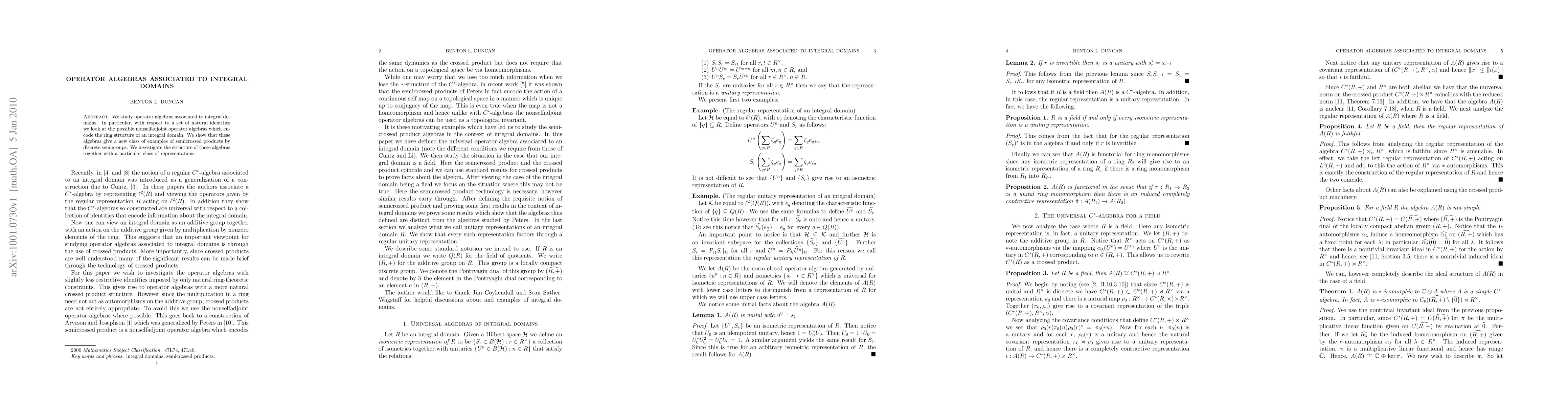 This paper explores operator algebras linked to the ring structure of integral domains, identifying a new class of semicrossed products by discrete semigroups. It delves into the structural properties of these algebras and examines specific representations.