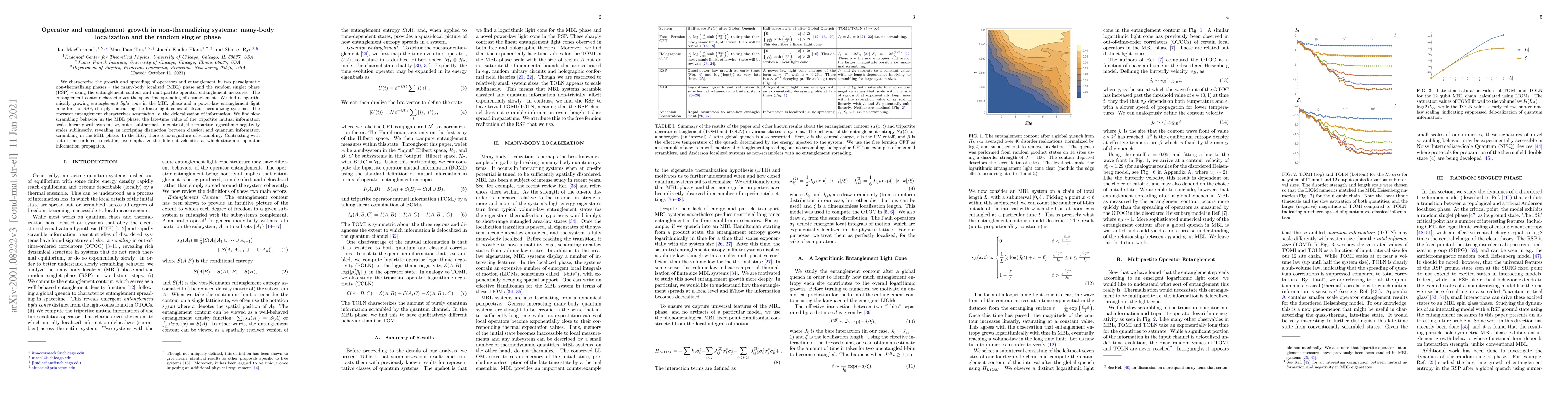 This paper investigates the dynamics of operators and entanglement in non-thermalizing phases, specifically many-body localization and the random singlet phase, using various measures like out-of-time-ordered correlators and the entanglement contour. It contrasts these phases with thermalizing systems and highlights the utility of these measures in understanding slow scrambling and non-thermal dynamics.