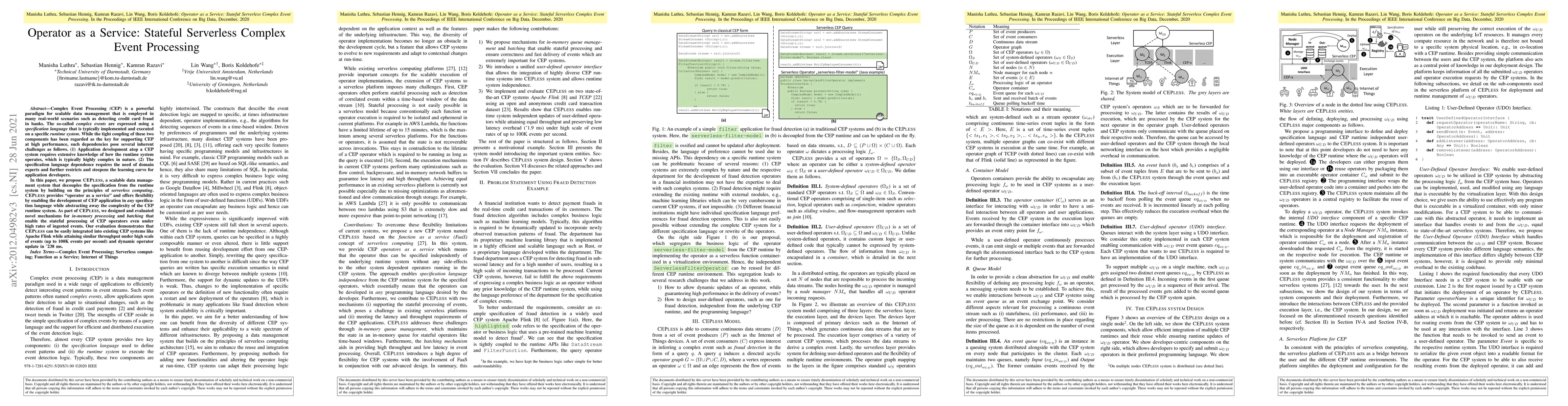 The paper introduces CEPLESS, a scalable data management system that decouples Complex Event Processing (CEP) specification from the runtime, leveraging serverless computing principles. It enables CEP application development using any specification language while abstracting the complexity of the CEP runtime, achieving high throughput and efficient stateful processing.