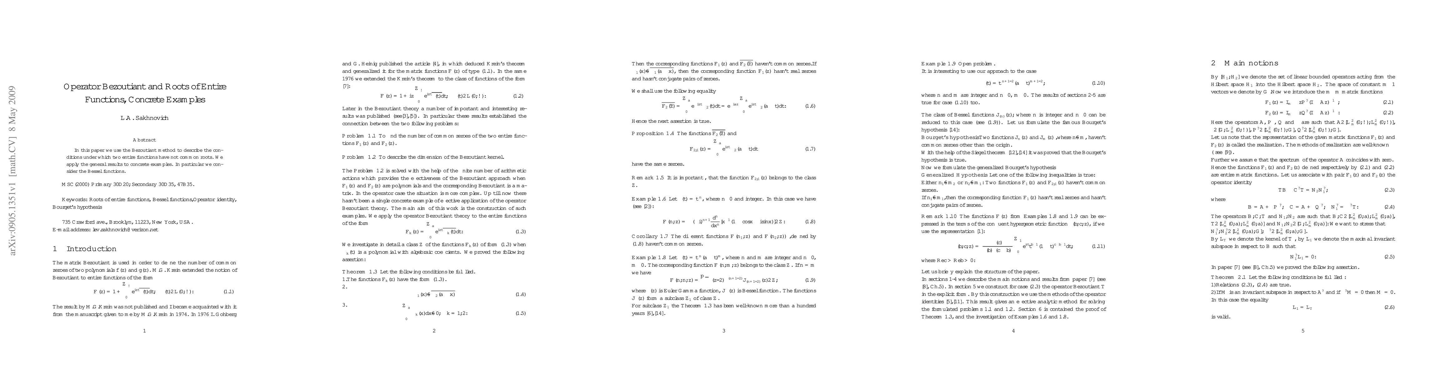 This paper employs the Bezoutiant method to establish conditions for two entire functions to have no common roots, and applies these findings to specific examples, notably Bessel functions.