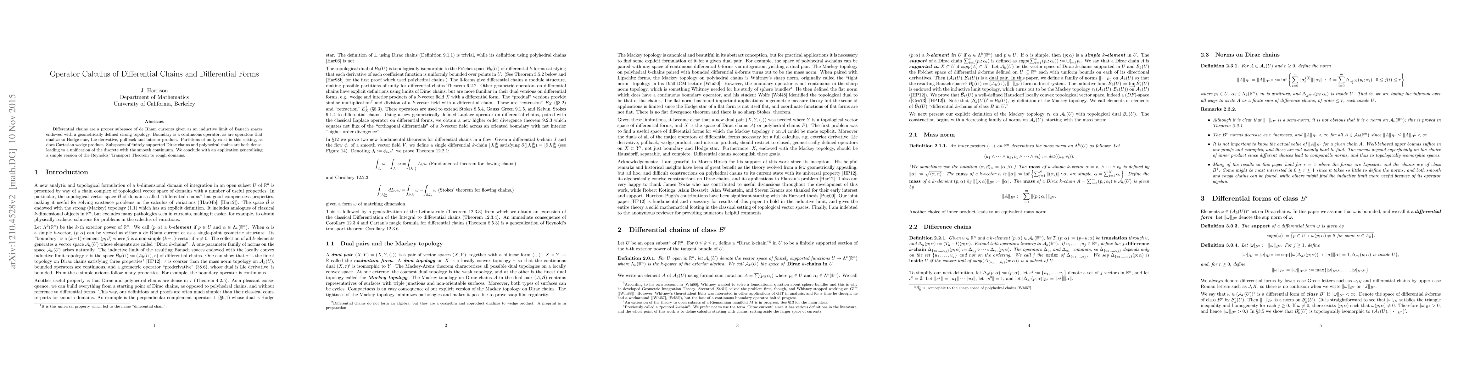 Differential chains are a proper subspace of de Rham currents given as an inductive limit of Banach spaces endowed with a geometrically defined strong topology. Boundary is a continuous operator, as are operators that dualize to Hodge star, Lie derivative, pullback and interior product. Partitions of unity exist in this setting, as does Cartesian wedge product. Subspaces of finitely supported Dirac chains and polyhedral chains are both dense, leading to a unification of the discrete with the smooth continuum. We conclude with an application generalizing a simple version of the Reynolds' Transport Theorem to rough domains.