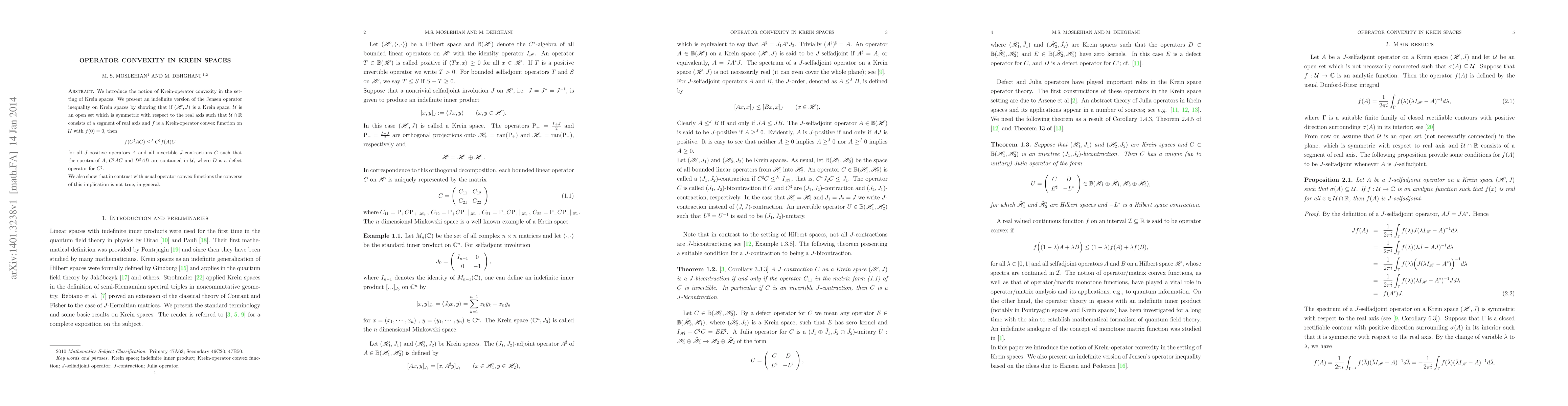 This paper introduces Krein-operator convexity in Krein spaces and proves an indefinite version of the Jensen operator inequality for such functions. It demonstrates that the inequality does not generally hold in reverse, distinguishing it from typical operator convex functions.