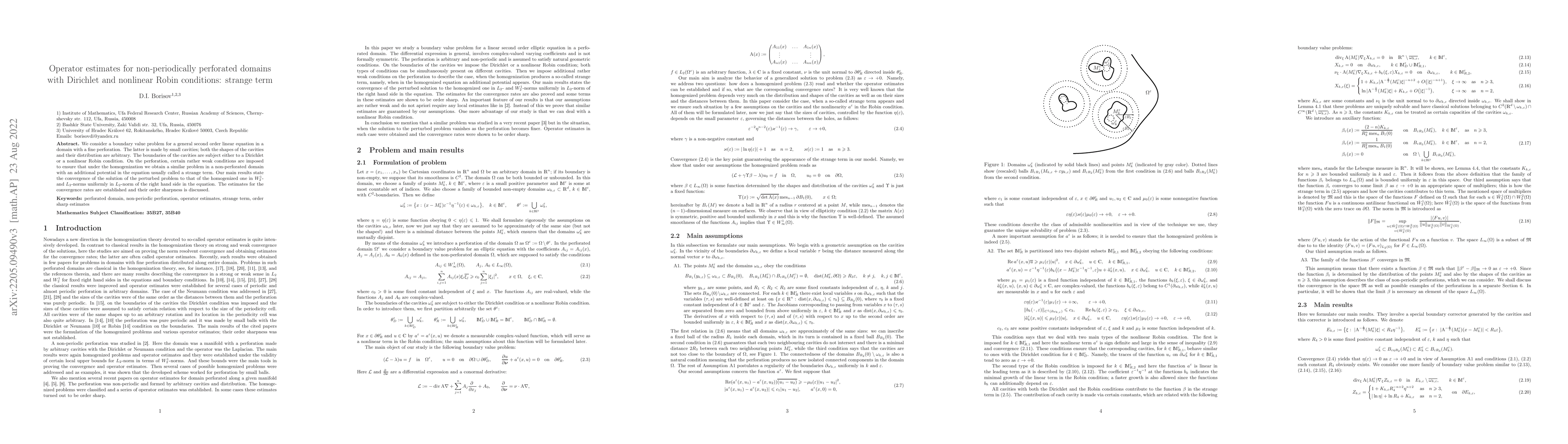 This paper investigates a boundary value problem for a second-order linear equation in a perforated domain with arbitrary cavity shapes and distributions. The study focuses on the convergence of solutions from the perforated to the homogenized domain under Dirichlet or nonlinear Robin conditions, establishing estimates for the convergence rates and discussing their sharpness.