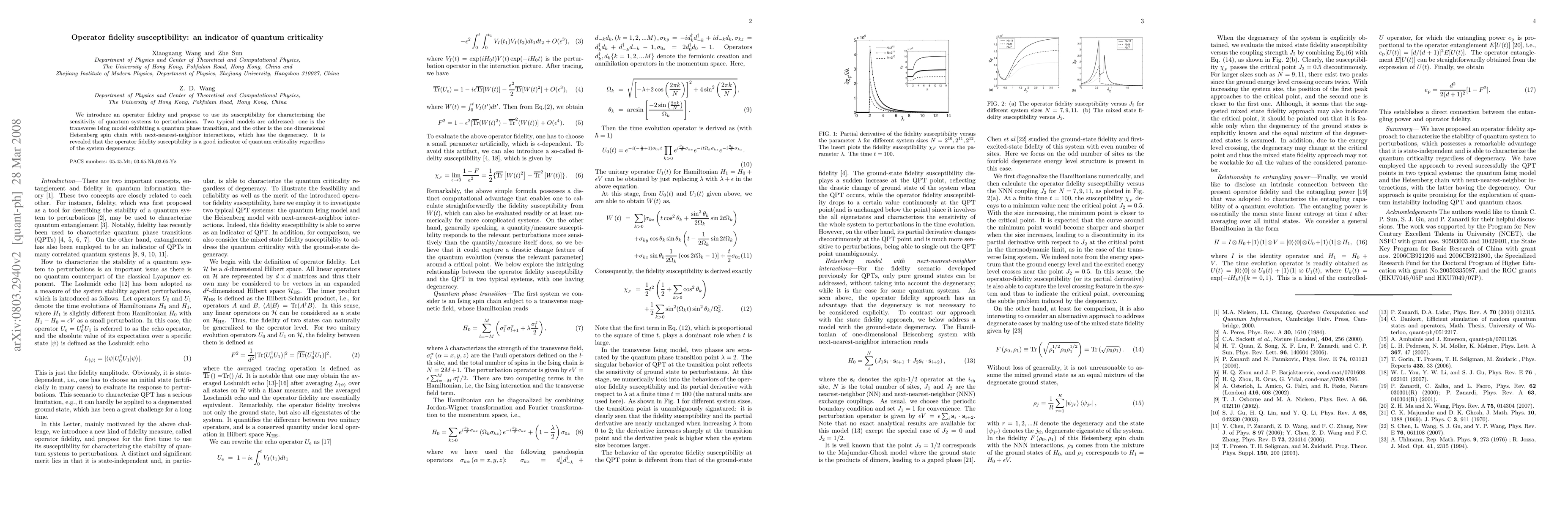We introduce the operator fidelity and propose to use its susceptibility for characterizing the sensitivity of quantum systems to perturbations. Two typical models are addressed: one is the transverse Ising model exhibiting a quantum phase transition, and the other is the one dimensional Heisenberg spin chain with next-nearest-neighbor interactions, which has the degeneracy. It is revealed that the operator fidelity susceptibility is a good indicator of quantum criticality regardless of the system degeneracy.