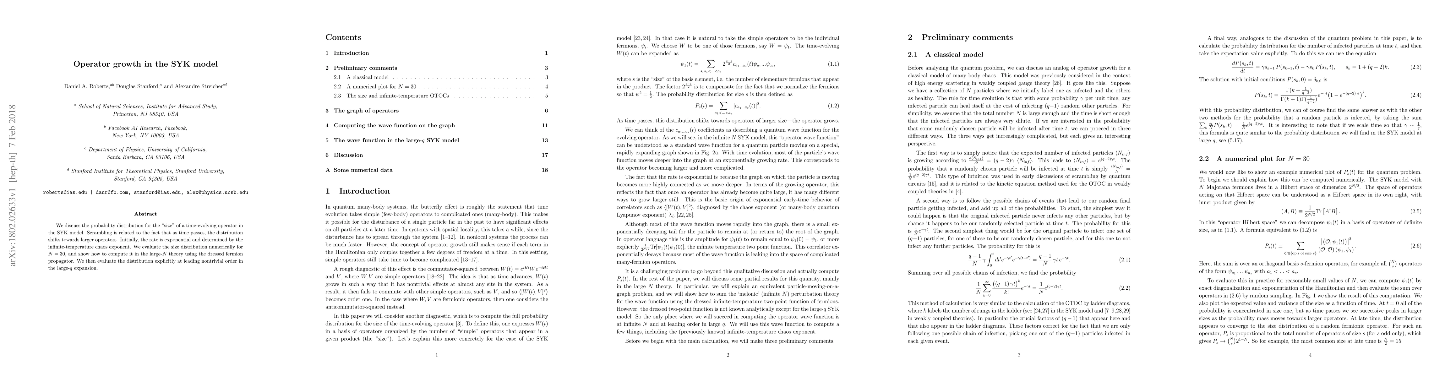 We discuss the probability distribution for the "size" of a time-evolving operator in the SYK model. Scrambling is related to the fact that as time passes, the distribution shifts towards larger operators. Initially, the rate is exponential and determined by the infinite-temperature chaos exponent. We evaluate the size distribution numerically for $N = 30$, and show how to compute it in the large-$N$ theory using the dressed fermion propagator. We then evaluate the distribution explicitly at leading nontrivial order in the large-$q$ expansion.