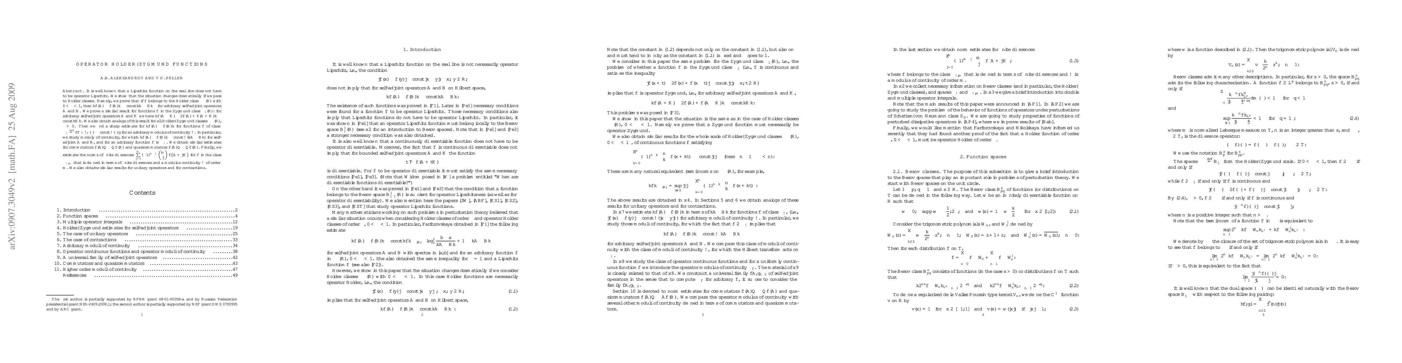 It is well known that a Lipschitz function on the real line does not have to be operator Lipschitz. We show that the situation changes dramatically if we pass to H\"older classes. Namely, we prove that if $f$ belongs to the H\"older class $\L_\a(\R)$ with $0<\a<1$, then $\|f(A)-f(B)\|\le\const\|A-B\|^\a$ for arbitrary self-adjoint operators $A$ and $B$. We prove a similar result for functions $f$ in the Zygmund class $\L_1(\R)$: for arbitrary self-adjoint operators $A$ and $K$ we have $\|f(A-K)-2f(A)+f(A+K)\|\le\const\|K\|$. We also obtain analogs of this result for all H\"older--Zygmund classes $\L_\a(\R)$, $\a>0$. Then we find a sharp estimate for $\|f(A)-f(B)\|$ for functions $f$ of class $\L_\o\df\{f: \o_f(\d)\le\const\o(\d)\}$ for an arbitrary modulus of continuity $\o$. In particular, we study moduly of continuity, for which $\|f(A)-f(B)\|\le\const\o(\|A-B\|)$ for self-adjoint $A$ and $B$, and for an arbitrary function $f$ in $\L_\o$. We obtain similar estimates for commutators $f(A)Q-Qf(A)$ and quasicommutators $f(A)Q-Qf(B)$. Finally, we estimate the norms of finite differences $\sum\limits_{j=0}^m(-1)^{m-j}(m j)f\big(A+jK\big)$ for $f$ in the class $\L_{\o,m}$ that is defined in terms of finite differences and a modulus continuity $\o$ of order $m$. We also obtaine similar results for unitary operators and for contractions.