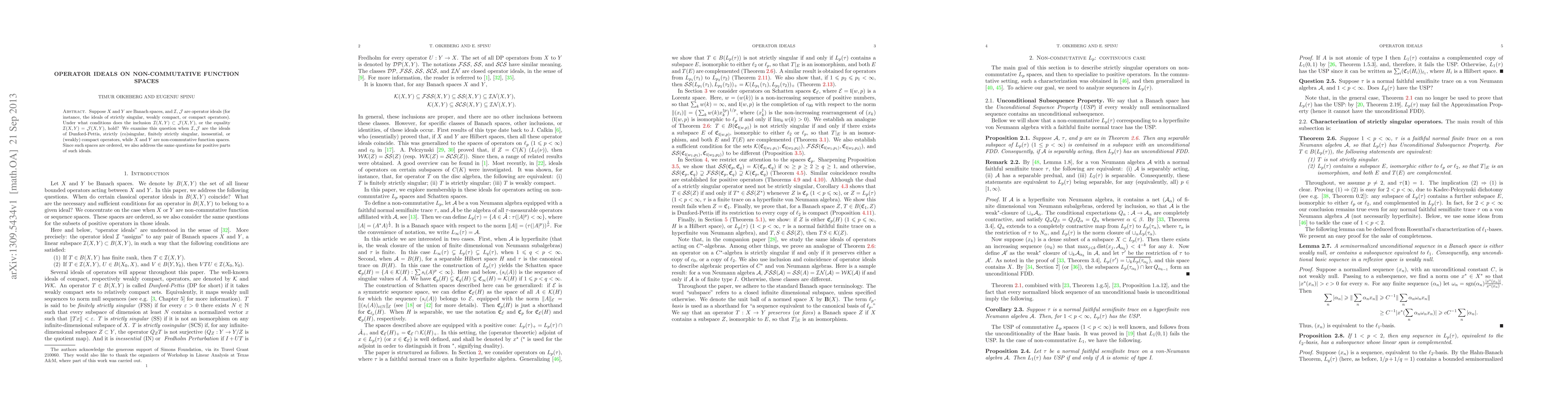 Suppose $X$ and $Y$ are Banach spaces, and ${\mathcal{I}}$, ${\mathcal{J}}$ are operator ideals (for instance, the ideals of strictly singular, weakly compact, or compact operators). Under what conditions does the inclusion ${\mathcal{I}}(X,Y) \subset {\mathcal{J}}(X,Y)$, or the equality ${\mathcal{I}}(X,Y) = {\mathcal{J}}(X,Y)$, hold? We examine this question when ${\mathcal{I}}, {\mathcal{J}}$ are the ideals of Dunford-Pettis, strictly (co)singular, finitely strictly singular, inessential, or (weakly) compact operators, while $X$ and $Y$ are non-commutative function spaces. Since such spaces are ordered, we also address the same questions for positive parts of such ideals.