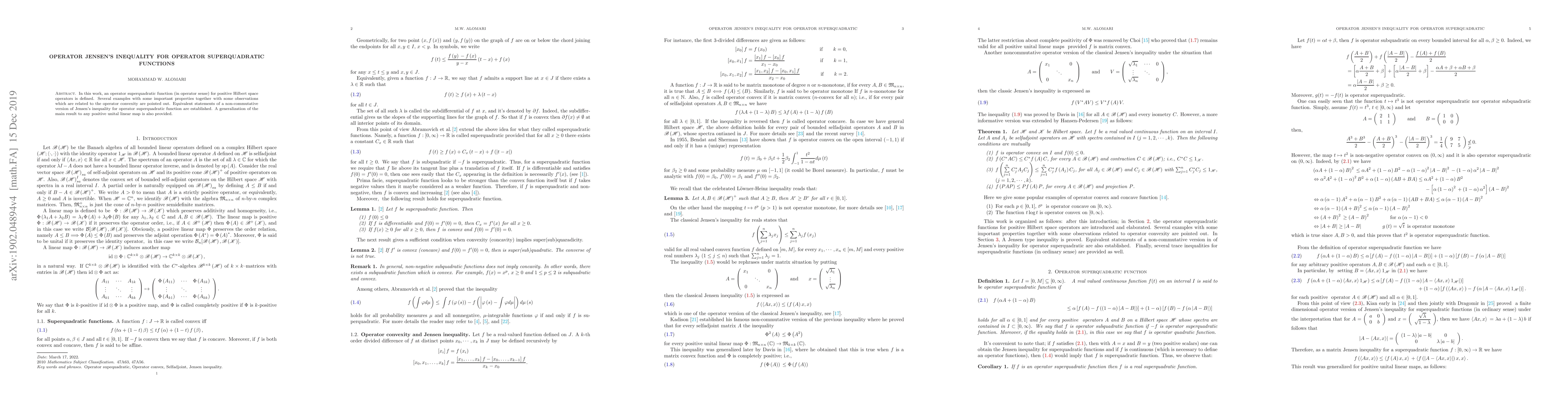 This paper defines operator superquadratic functions for positive Hilbert space operators and establishes a non-commutative version of Jensen's inequality for these functions. It also generalizes the main result to any positive unital linear map.