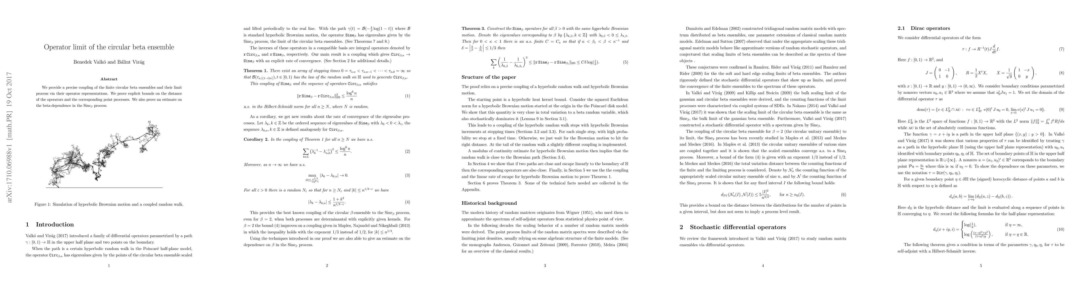 Researchers provide precise coupling of circular beta ensembles and bound their distance, proving bounds on operators and point processes with beta-dependence estimates for the Sine process.
