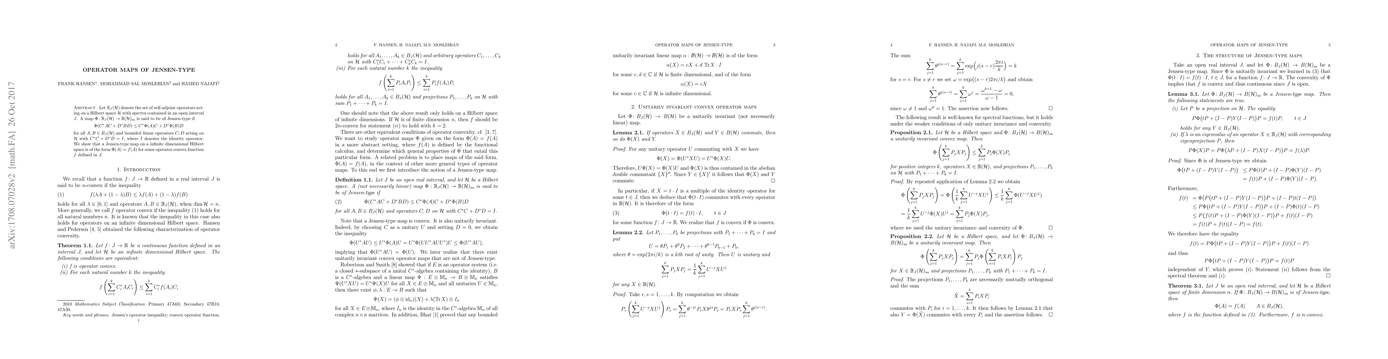 Let $\mathbb{B}_J(\mathcal H)$ denote the set of self-adjoint operators acting on a Hilbert space $\mathcal{H}$ with spectra contained in an open interval $J$. A map $\Phi\colon\mathbb{B}_J(\mathcal H)\to {\mathbb B}(\mathcal H)_\text{sa} $ is said to be of Jensen-type if \[ \Phi(C^*AC+D^*BD)\le C^*\Phi(A)C+D^*\Phi(B)D \] for all $ A, B \in B_J(\mathcal H)$ and bounded linear operators $ C,D $ acting on $ \mathcal H $ with $ C^*C+D^*D=I$, where $I$ denotes the identity operator. We show that a Jensen-type map on a infinite dimensional Hilbert space is of the form $\Phi(A)=f(A)$ for some operator convex function $ f $ defined in $ J $.