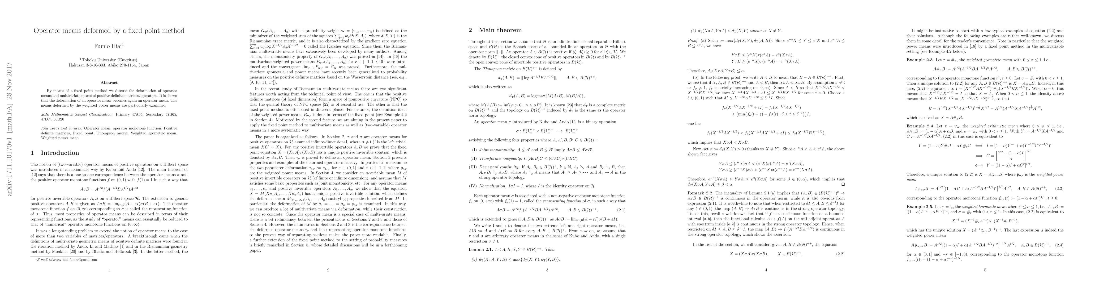 Researchers explored how a fixed point method deforms operator means, finding that it can produce new operator means, particularly with weighted power means.