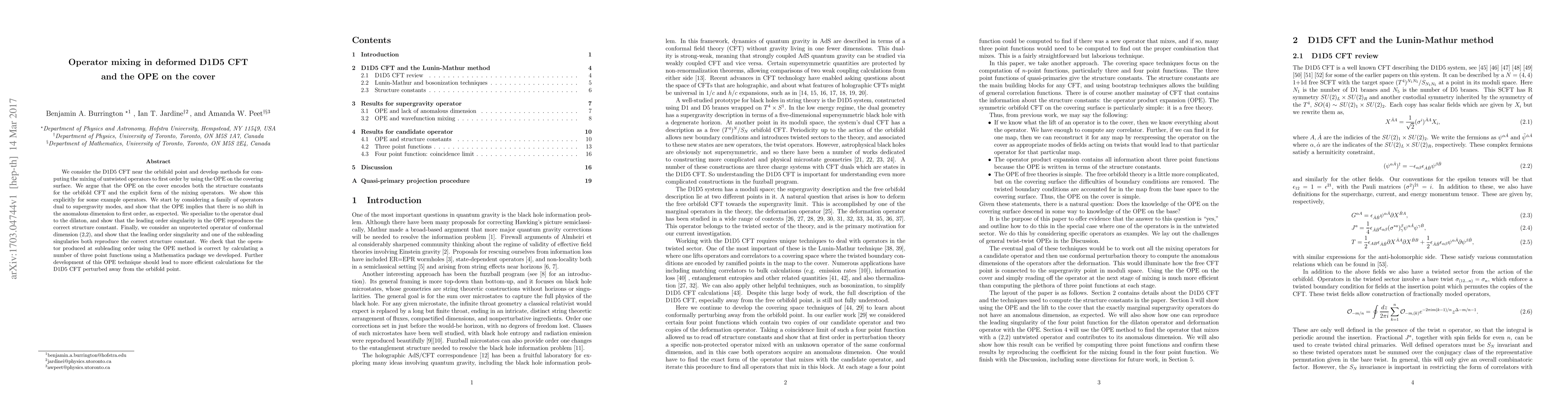 This paper develops a method to calculate mixing of operators in deformed D1D5 CFT using the OPE on the covering surface, with implications for efficient calculations near the orbifold point.