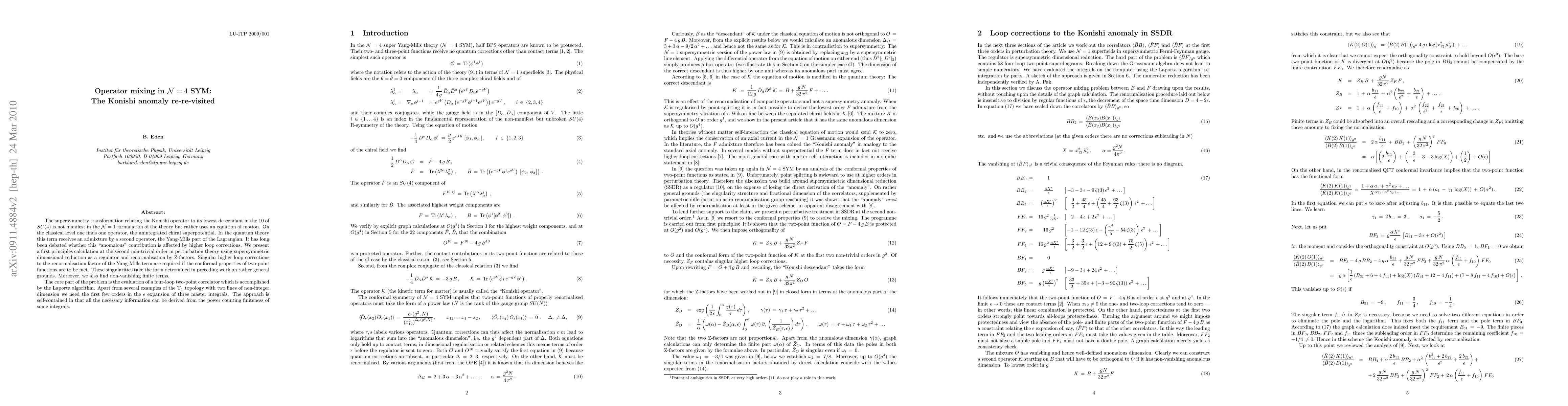 The supersymmetry transformation relating the Konishi operator to its lowest descendant in the 10 of SU(4) is not manifest in the N=1 formulation of the theory but rather uses an equation of motion. On the classical level one finds one operator, the unintegrated chiral superpotential. In the quantum theory this term receives an admixture by a second operator, the Yang-Mills part of the Lagrangian. It has long been debated whether this "anomalous" contribution is affected by higher loop corrections. We present a first principles calculation at the second non-trivial order in perturbation theory using supersymmetric dimensional reduction as a regulator and renormalisation by Z-factors. Singular higher loop corrections to the renormalisation factor of the Yang-Mills term are required if the conformal properties of two-point functions are to be met. These singularities take the form determined in preceding work on rather general grounds. Moreover, we also find non-vanishing finite terms. The core part of the problem is the evaluation of a four-loop two-point correlator which is accomplished by the Laporta algorithm. Apart from several examples of the T1 topology with two lines of non-integer dimension we need the first few orders in the epsilon expansion of three master integrals. The approach is self-contained in that all the necessary information can be derived from the power counting finiteness of some integrals.