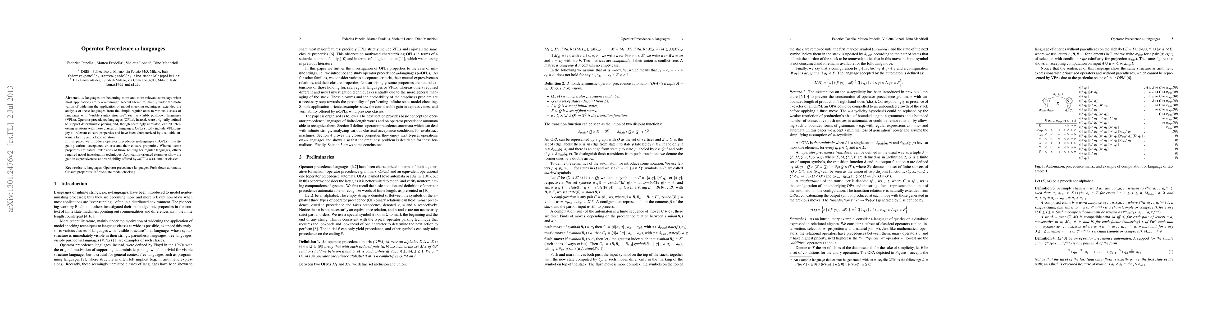 This paper introduces operator precedence ω-languages (\omega OPLs) and explores their acceptance criteria and closure properties. It demonstrates how \omega OPLs extend the expressiveness and verifiability of smaller classes like visibly pushdown languages, offering significant benefits for ever-running applications.