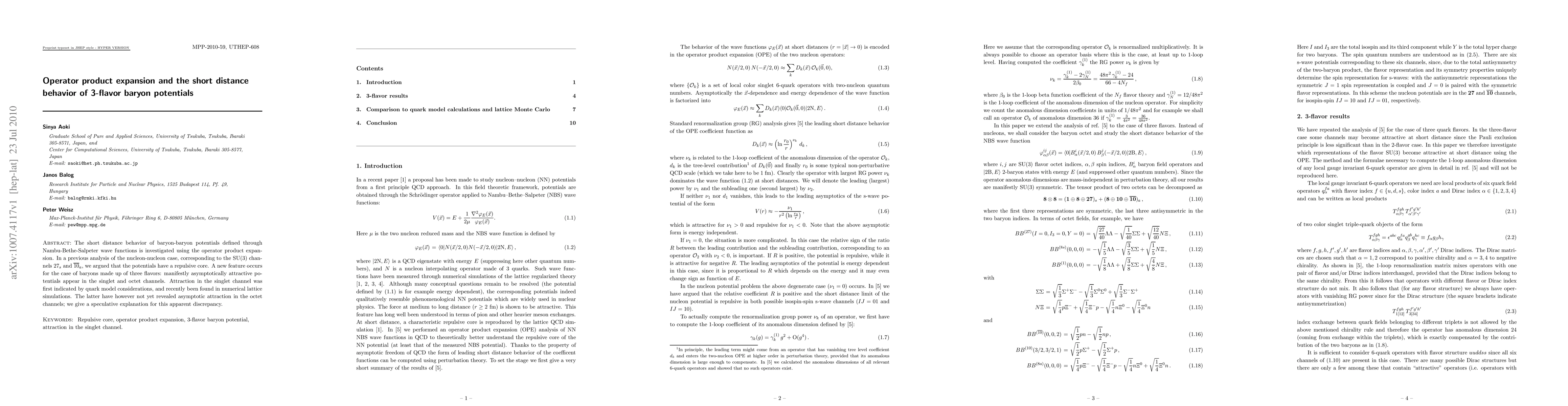 The short distance behavior of baryon-baryon potentials defined through Nambu-Bethe-Salpeter wave functions is investigated using the operator product expansion. In a previous analysis of the nucleon-nucleon case, corresponding to the SU(3) channels $27_s$ and $\overline{10}_a$, we argued that the potentials have a repulsive core. A new feature occurs for the case of baryons made up of three flavors: manifestly asymptotically attractive potentials appear in the singlet and octet channels. Attraction in the singlet channel was first indicated by quark model considerations, and recently been found in numerical lattice simulations. The latter have however not yet revealed asymptotic attraction in the octet channels; we give a speculative explanation for this apparent discrepancy.