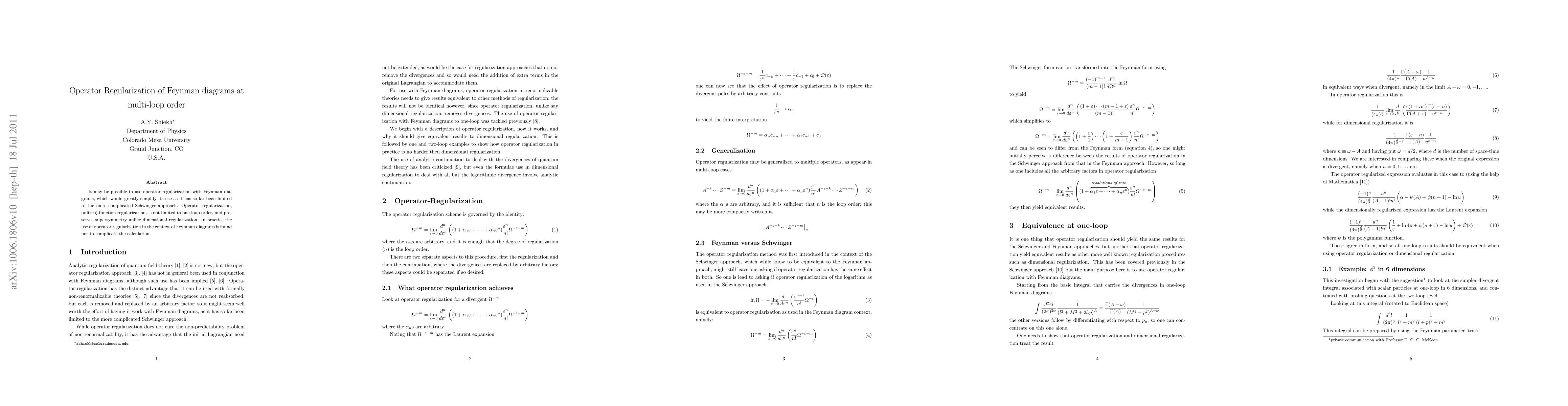 Summary: This paper explores the potential of operator regularization for Feynman diagrams at multi-loop orders, suggesting it simplifies calculations and preserves supersymmetry, unlike dimensional regularization. The approach shows practical feasibility beyond one-loop order.