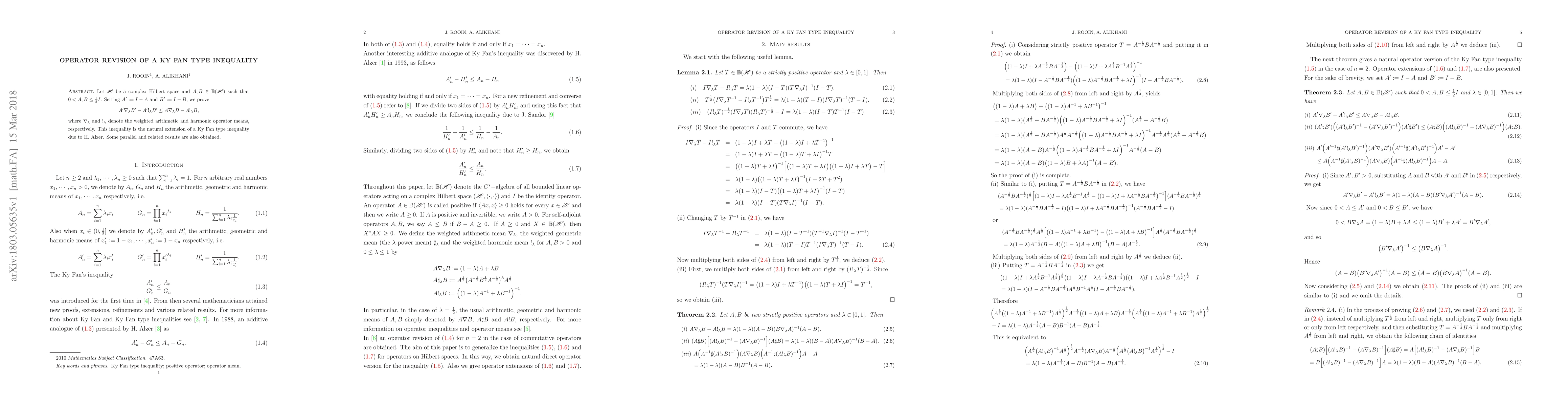 Researchers prove a Ky Fan type inequality for operator means in complex Hilbert spaces, extending previous work and providing new insights into weighted arithmetic and harmonic operator means.