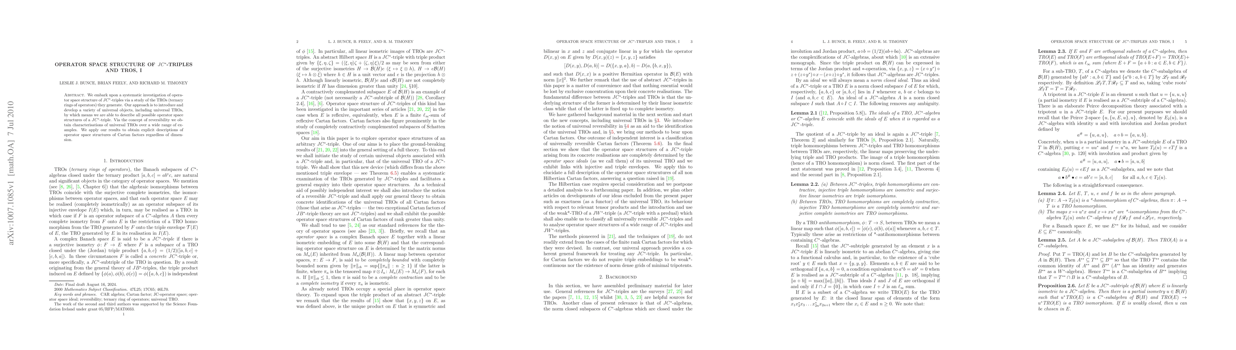 This paper systematically investigates the operator space structure of JC*-triples through the study of the ternary rings of operators (TROs) they generate. The authors introduce universal objects, including universal TROs, to describe all possible operator space structures of JC*-triples and apply these concepts to obtain explicit descriptions of operator space structures of Cartan factors.