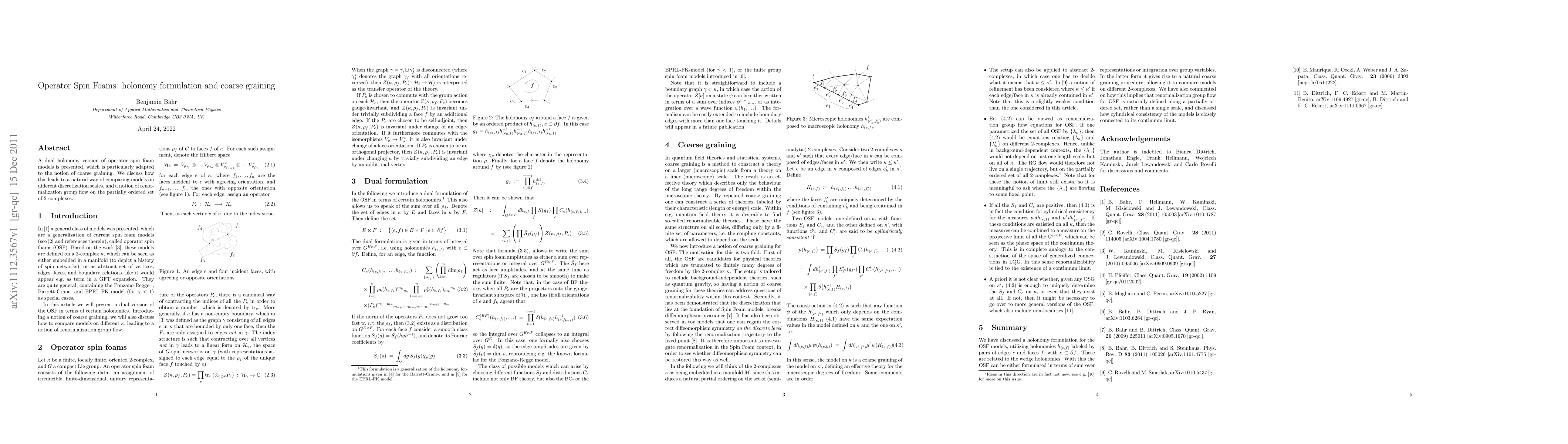 This paper introduces a dual holonomy version of operator spin foam models, emphasizing its suitability for coarse graining. It explores how this approach facilitates comparisons between models at different discretization scales and introduces a renormalization group flow on the set of 2-complexes.