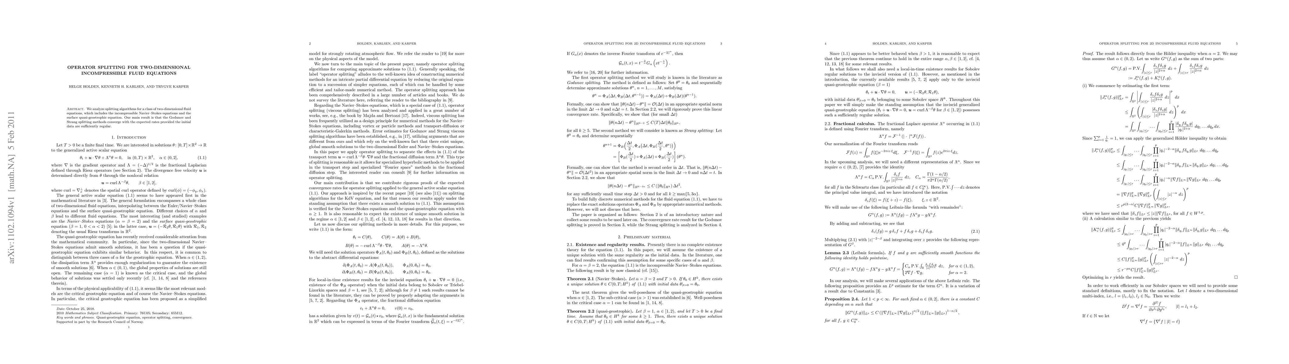The Godunov and Strang splitting methods for two-dimensional fluid equations converge at expected rates under regular initial conditions.