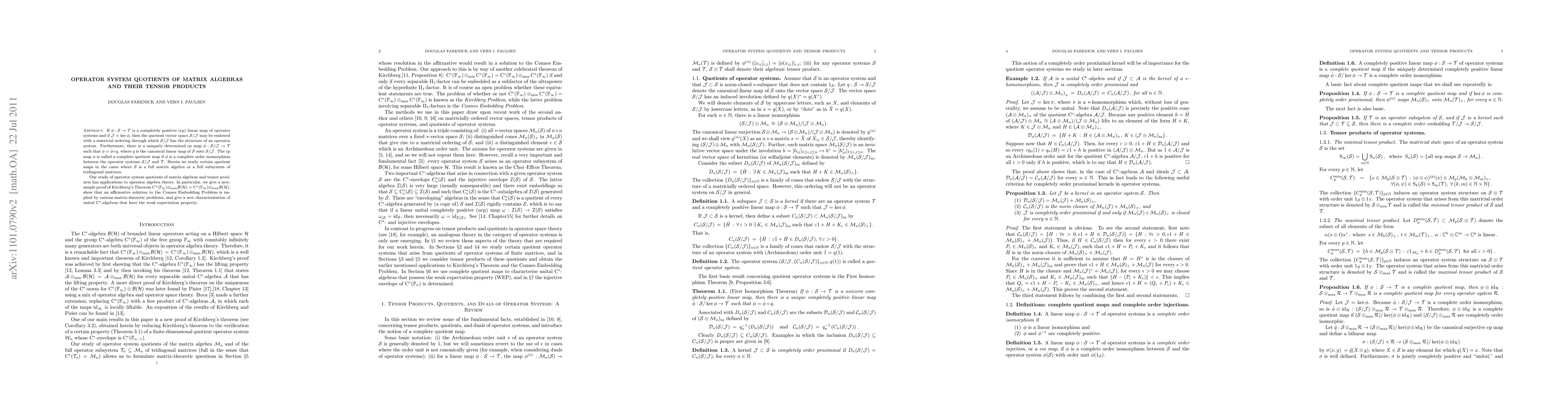 This paper studies operator system quotients derived from matrix algebras and their tensor products, providing new proofs for Kirchberg's theorem on B(H) tensor products and exploring implications for the Connes Embedding Problem and unital C*-algebras with the weak expectation property.