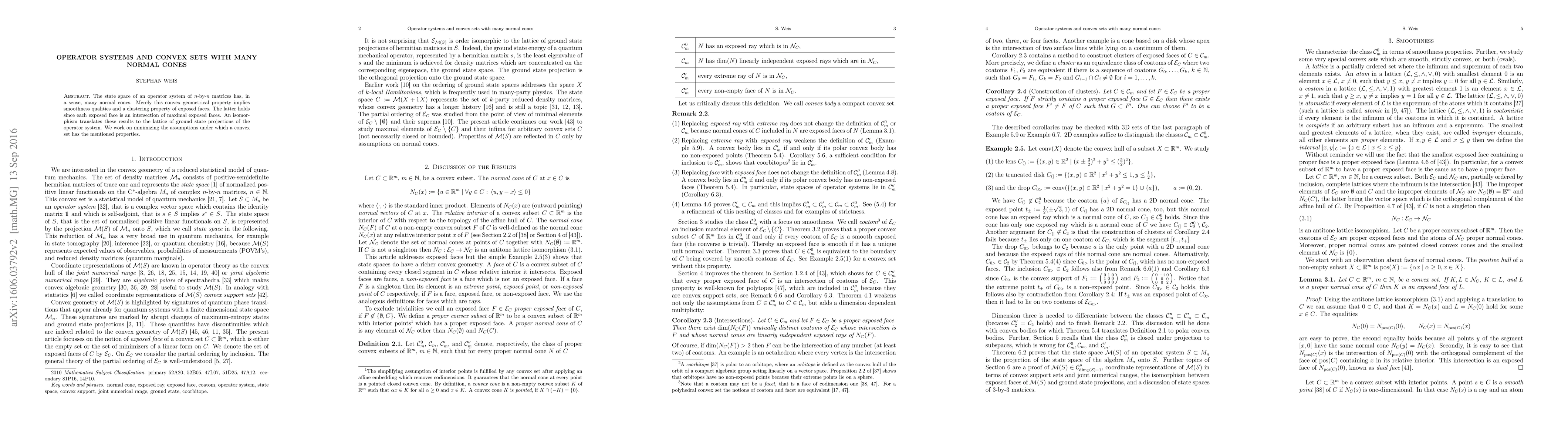 This paper investigates operator systems and the convex sets formed by their matrix representations, demonstrating that these sets possess numerous normal cones. This geometrical property leads to smoothness and a clustering of exposed faces, which are intersections of maximal exposed faces, and these results are mirrored in the lattice of ground state projections. The authors aim to minimize the assumptions required for a convex set to exhibit these properties.