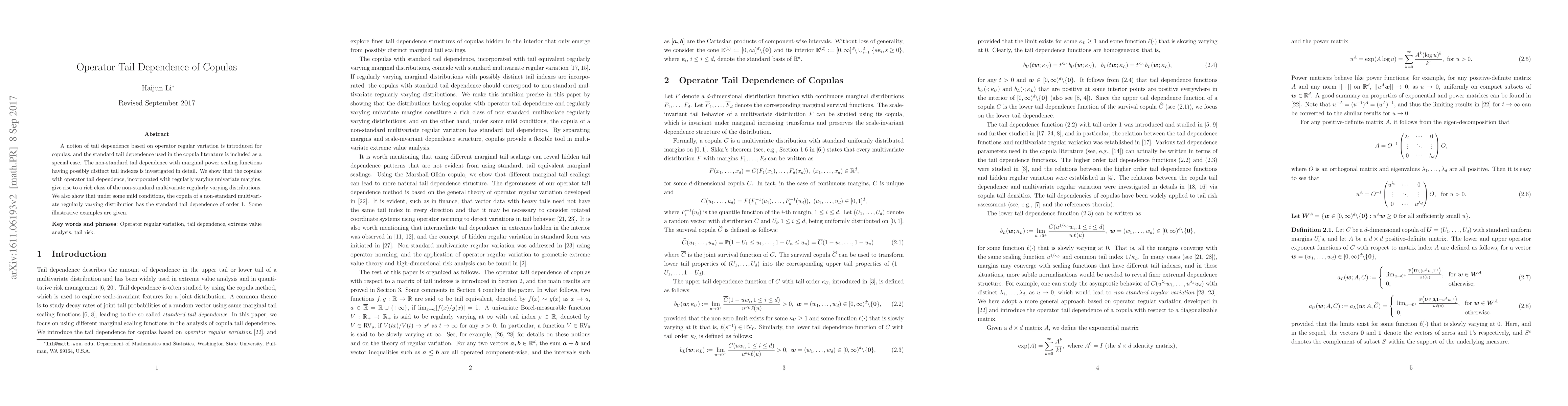 This paper introduces a novel concept of operator tail dependence for copulas, encompassing standard tail dependence as a special case. It explores copulas with distinct tail indexes and demonstrates their connection to non-standard multivariate regularly varying distributions, while also showing that under mild conditions, these copulas retain standard tail dependence of order 1.