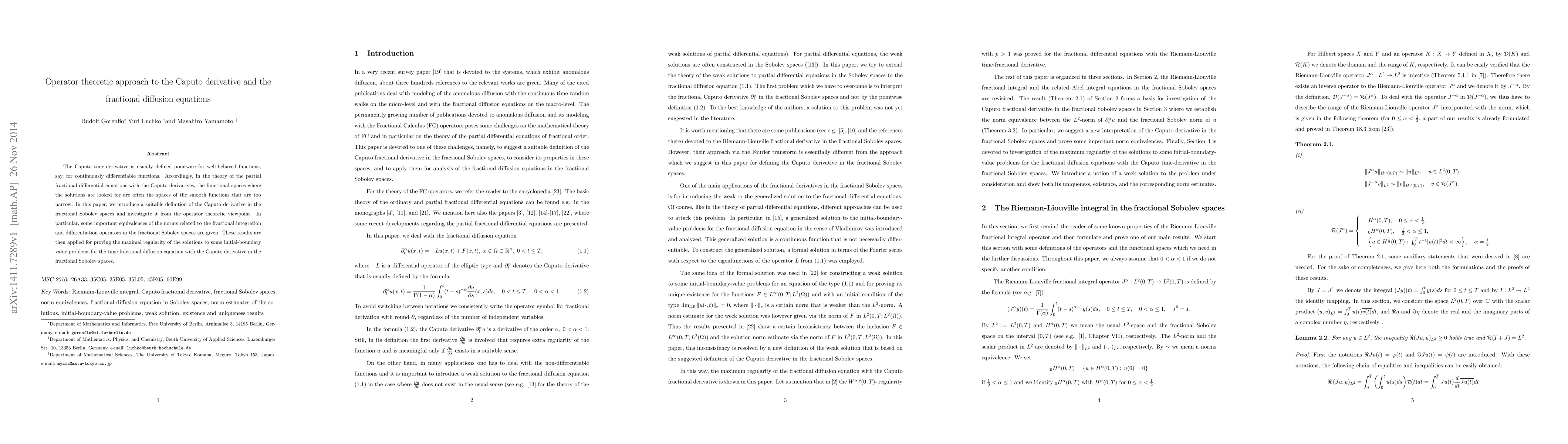 The Caputo time-derivative is usually defined pointwise for well-behaved functions, say, for continuously differentiable functions. Accordingly, in the theory of the partial fractional differential equations with the Caputo derivatives, the functional spaces where the solutions are looked for are often the spaces of the smooth functions that are too narrow. In this paper, we introduce a suitable definition of the Caputo derivative in the fractional Sobolev spaces and investigate it from the operator theoretic viewpoint. In particular, some important equivalences of the norms related to the fractional integration and differentiation operators in the fractional Sobolev spaces are given. These results are then applied for proving the maximal regularity of the solutions to some initial-boundary value problems for the time-fractional diffusion equation with the Caputo derivative in the fractional Sobolev spaces.