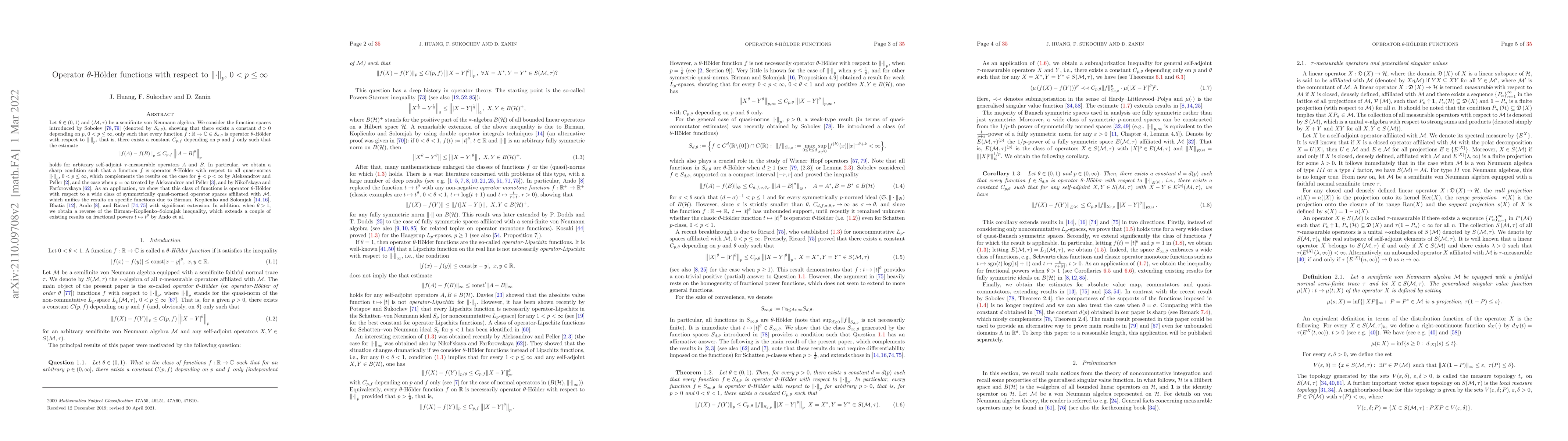 A research paper establishes that certain function spaces are operator θ-h"{o}lder with respect to a wide class of symmetrically quasi-normed operator spaces, complementing existing results and providing new insights into operator θ-h"{o}lder functions.