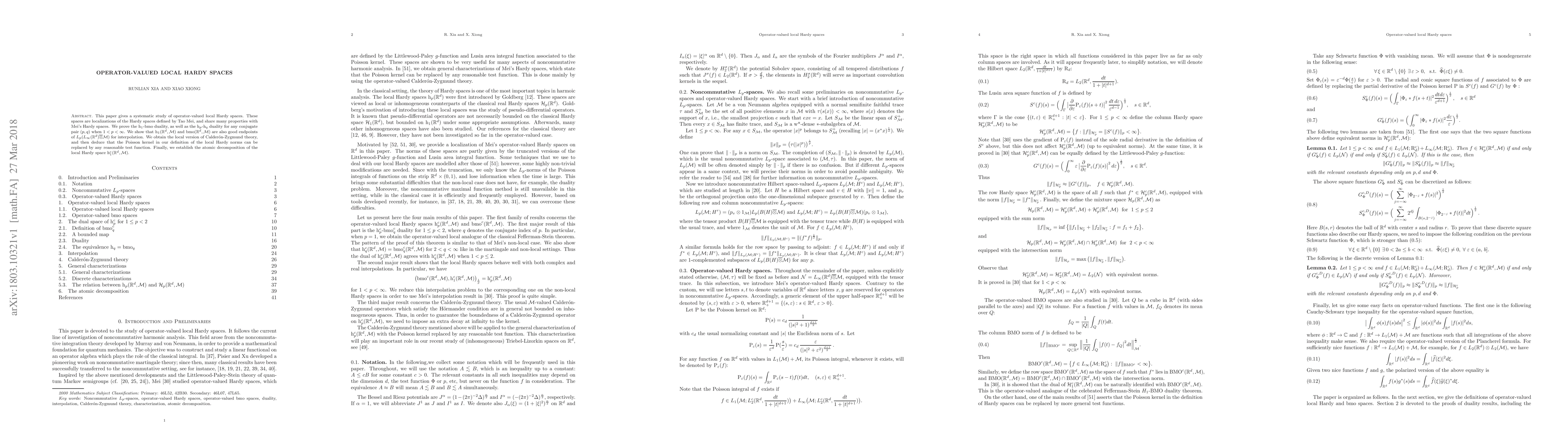 This paper systematically explores operator-valued local Hardy spaces, proving ${\rm h}_1$-$\rm bmo$ and ${\rm h}_p$-${\rm h}_q$ dualities for conjugate pairs, and establishing a local version of Calder\'on-Zygmund theory with a flexible test function for the Poisson kernel. It also provides an atomic decomposition for ${\rm h}_1^c(\mathbb{R}^d,\mathcal M)$.