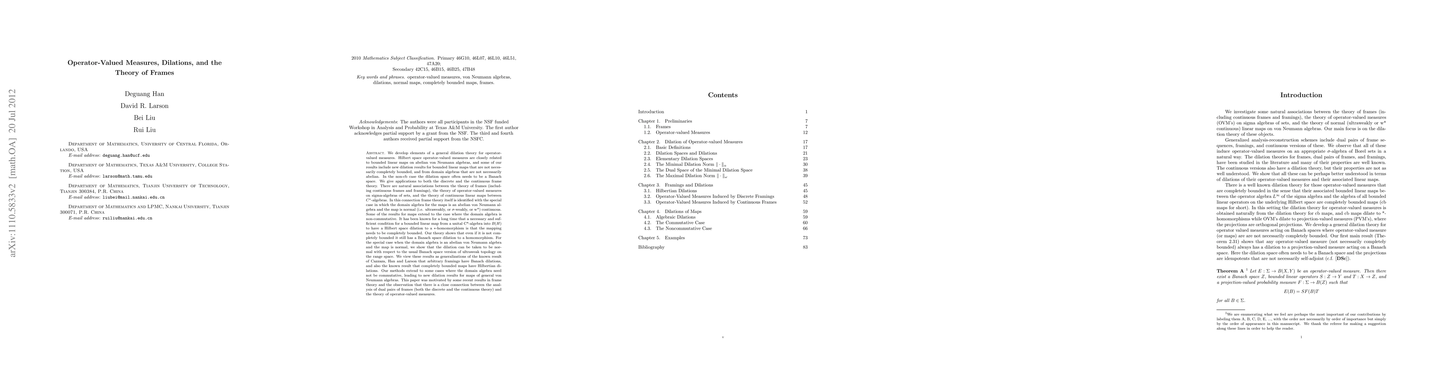 This paper develops a dilation theory for operator-valued measures and linear maps between operator algebras, extending known results from frame theory. It generalizes these concepts to settings beyond completely-bounded maps.
