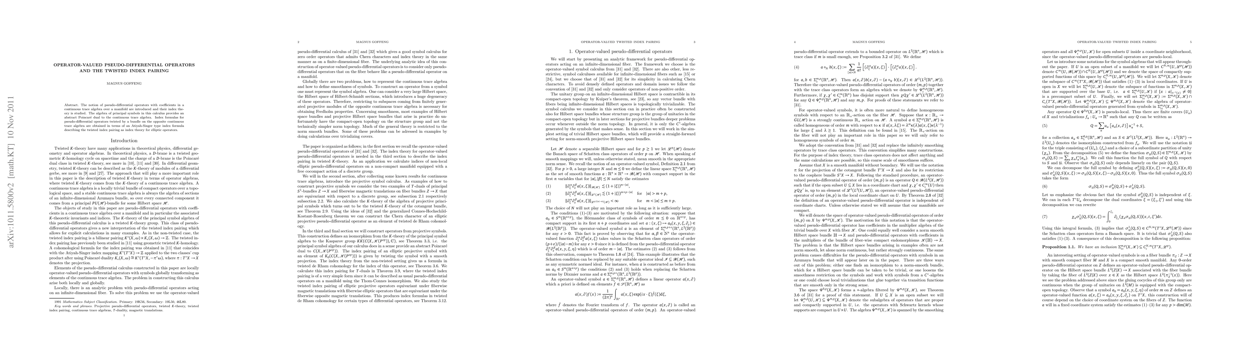 This paper introduces pseudo-differential operators with continuous trace algebra coefficients and explores their index theory. It presents an abstract Poincaré dual using the algebra of principal symbols and derives Atiyah-Singer type index formulas for twisted pseudo-differential operators, relating them to elliptic operator index theory.