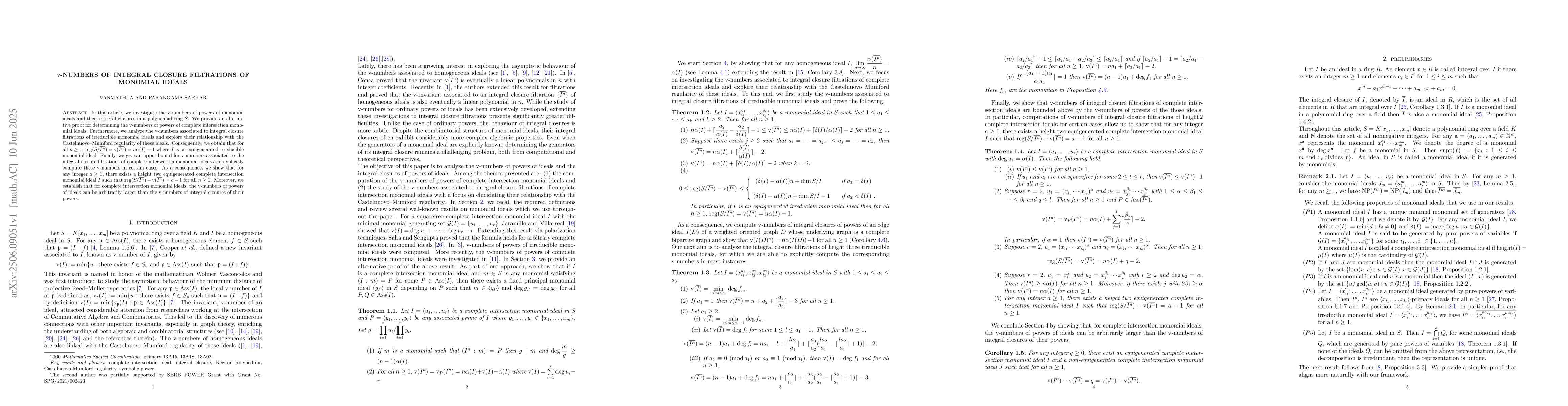 This paper investigates the v-numbers of powers of monomial ideals and their integral closures, revealing a relationship between Castelnuovo-Mumford regularity and v-numbers that allows for an arbitrarily large difference in complete intersection cases.