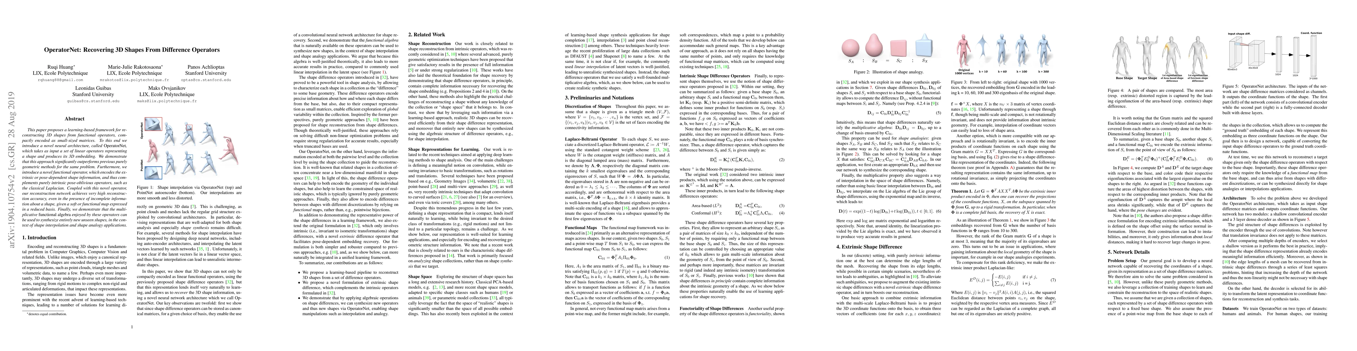 This paper proposes a learning-based framework for reconstructing 3D shapes from functional operators, compactly encoded as small-sized matrices. To this end we introduce a novel neural architecture, called OperatorNet, which takes as input a set of linear operators representing a shape and produces its 3D embedding. We demonstrate that this approach significantly outperforms previous purely geometric methods for the same problem. Furthermore, we introduce a novel functional operator, which encodes the extrinsic or pose-dependent shape information, and thus complements purely intrinsic pose-oblivious operators, such as the classical Laplacian. Coupled with this novel operator, our reconstruction network achieves very high reconstruction accuracy, even in the presence of incomplete information about a shape, given a soft or functional map expressed in a reduced basis. Finally, we demonstrate that the multiplicative functional algebra enjoyed by these operators can be used to synthesize entirely new unseen shapes, in the context of shape interpolation and shape analogy applications.