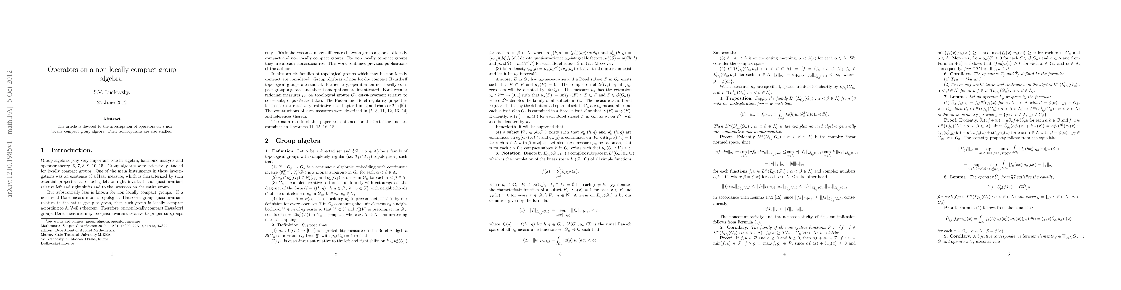 Summary: This paper explores the properties of operators within a non locally compact group algebra, focusing on their structural characteristics and isomorphisms. The study aims to understand how these operators behave and relate to each other in this specific algebraic context.