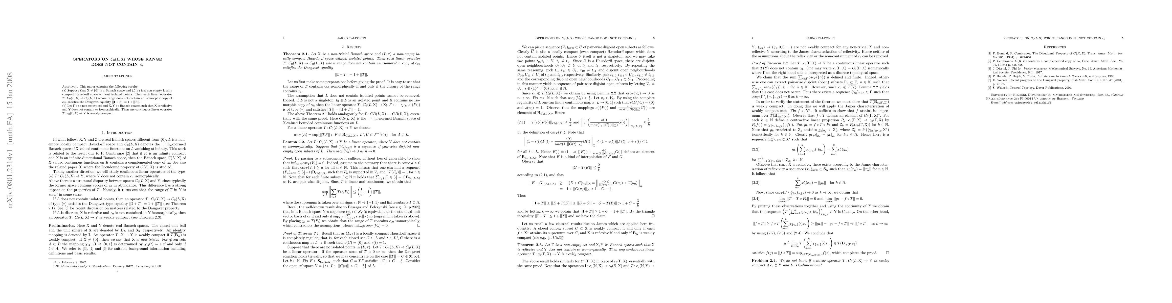 Summary: This paper proves that linear operators on C_{0}(L,X) without a range containing C_{00} satisfy the Daugavet equality when X is a non-trivial Banach space and L is a non-empty locally compact Hausdorff space without isolated points. Additionally, it shows that any continuous linear operator from c_{0}(\Gamma,X) to Y is weakly compact when X is reflexive and Y does not contain c_{0} isomorphically.