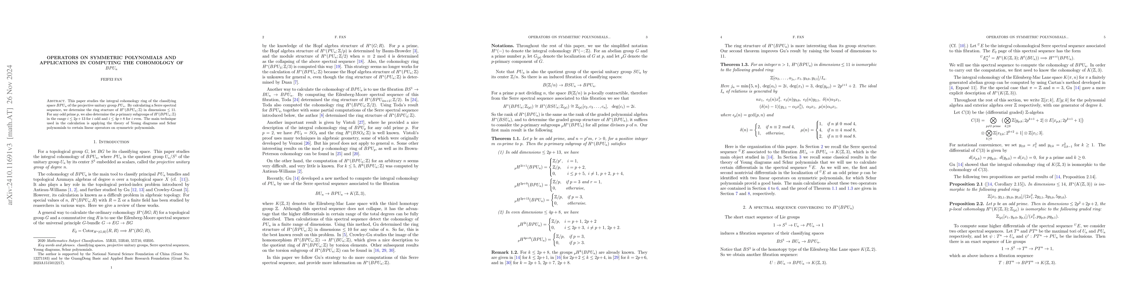This paper determines the integral cohomology ring structure of $BPU_n$ using a Serre spectral sequence and Young diagrams, providing $p$-primary subgroups for dimensions up to $2p+13$ for odd $i$ and $4p+8$ for even $i$. The study employs operators on symmetric polynomials based on Schur polynomials.
