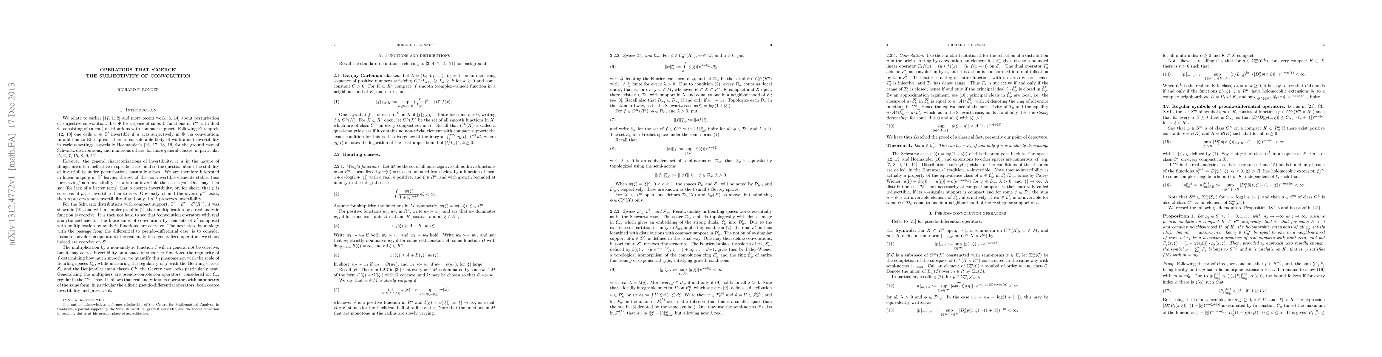 Considered are operators that leave the set of non-invertible (in the sense of Ehrenpreis) distributions stable. They simultaneously generalise the operation of convolution by a distribution with compact support and the operation of multiplication by a real analytic function; they are here called pseudo-convolutions since they also generalise pseudo-differential operators. (It is shown that the elliptic real analytic pseudo-differential operators leave both the non-invertible and the invertible distributions invariant.) But when the condition of real-analyticity is relaxed, such operators may map a non-invertible distribution to one invertible -- given that the invertibility in both cases concerns the same function space. By varying the space, however, one can measure the 'loss of non-invertibily' that a non-analytic perturbation may introduce. This phenomenon is here studied using the Beurling classes of functions and measuring the regularity of operator symbols in the Denjoy-Carleman sense; the Gevrey case turns out particularly simple.