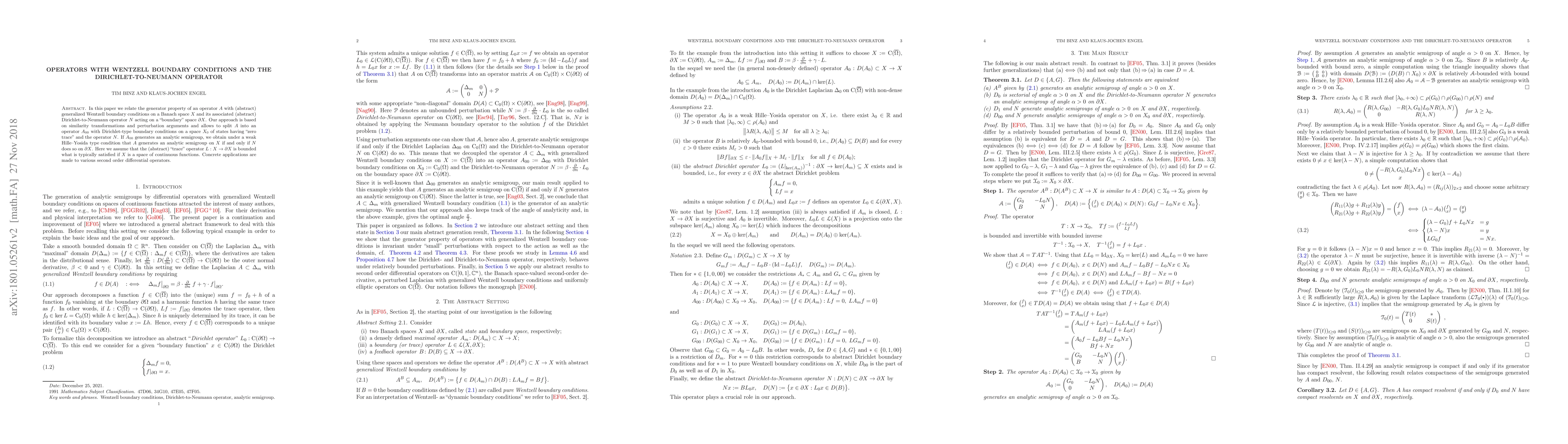 This paper explores the relationship between an operator $A$ with generalized Wentzell boundary conditions and its associated Dirichlet-to-Neumann operator $N$, proving that $A$ generates an analytic semigroup if and only if $N$ does under certain conditions, with applications to second-order differential operators.