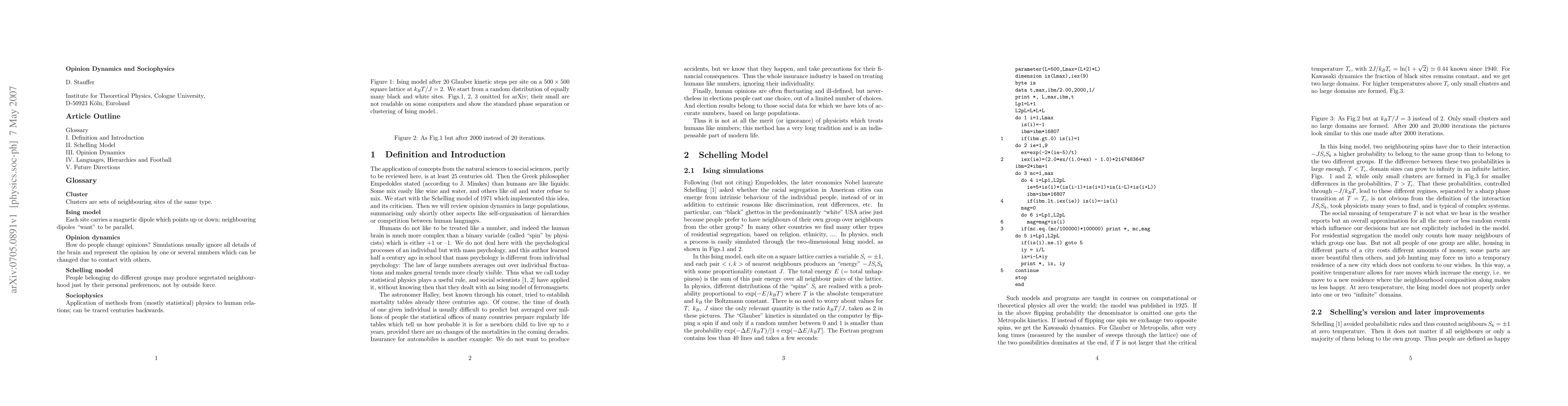 This paper explores the interdisciplinary study of opinion dynamics through the lens of sociophysics, introducing foundational models like the Schelling model and discussing complex phenomena such as language hierarchies and football fandom. It concludes with potential future research directions.