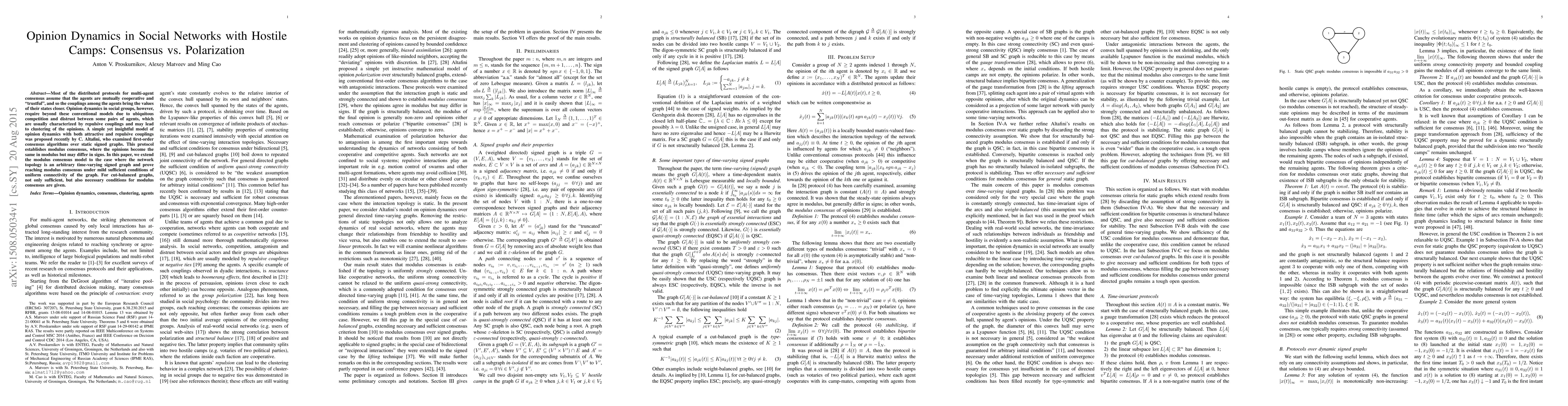 This paper explores opinion dynamics in social networks characterized by both cooperative and competitive interactions, extending a model of modulus consensus to time-varying signed graphs. It proves conditions for reaching modulus consensus and provides necessary conditions for cut-balanced graphs.