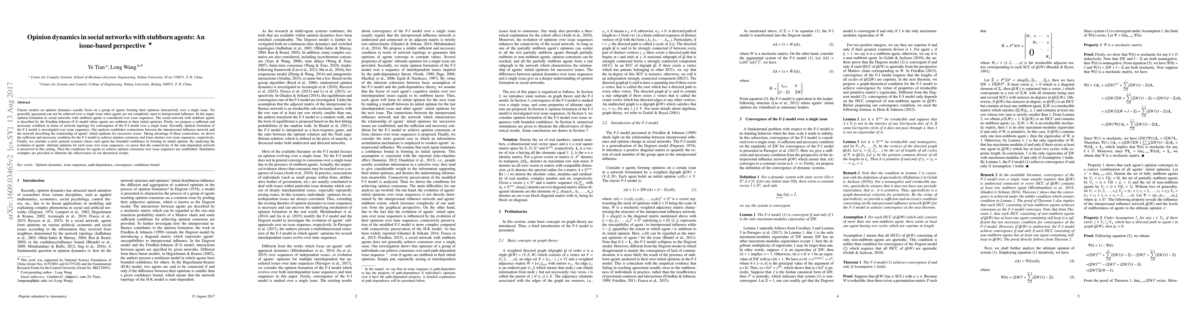 The paper investigates opinion dynamics in social networks with stubborn agents over issue sequences using the Friedkin-Johnsen (F-J) model, which describes agents as stubborn to their initial opinions. The study establishes conditions for convergence of the F-J model over single issues and over issue sequences, connecting interpersonal influence networks with agent initial opinion networks for successive issues.