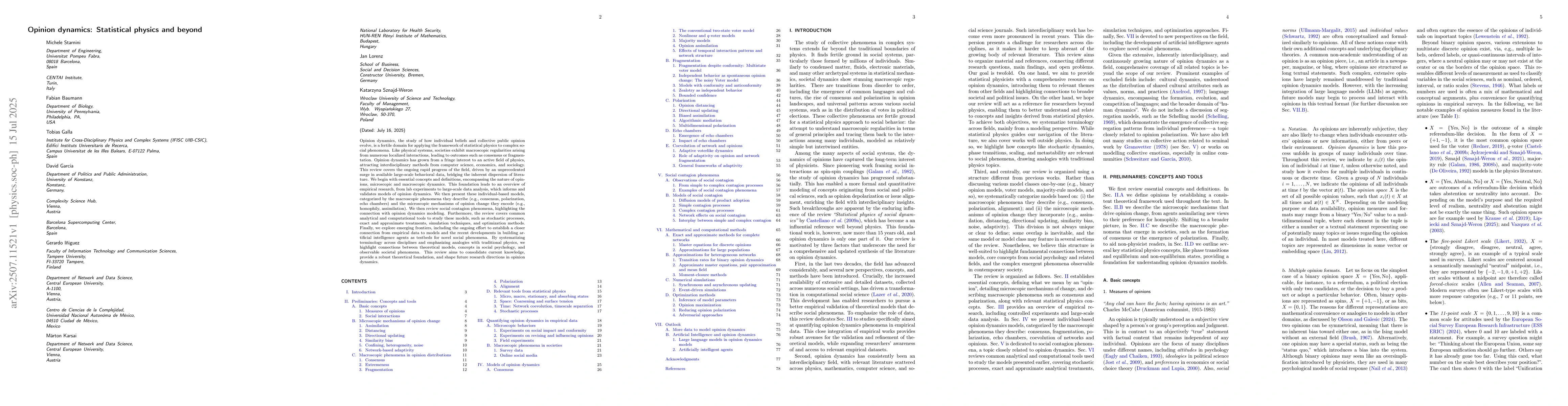 Opinion dynamics, the study of how individual beliefs and collective public opinion evolve, is a fertile domain for applying statistical physics to complex social phenomena. Like physical systems, societies exhibit macroscopic regularities from localized interactions, leading to outcomes such as consensus or fragmentation. This field has grown significantly, attracting interdisciplinary methods and driven by a surge in large-scale behavioral data. This review covers its rapid progress, bridging the literature dispersion. We begin with essential concepts and definitions, encompassing the nature of opinions, microscopic and macroscopic dynamics. This foundation leads to an overview of empirical research, from lab experiments to large-scale data analysis, which informs and validates models of opinion dynamics. We then present individual-based models, categorized by their macroscopic phenomena (e.g., consensus, polarization, echo chambers) and microscopic mechanisms (e.g., homophily, assimilation). We also review social contagion phenomena, highlighting their connection to opinion dynamics. Furthermore, the review covers common analytical and computational tools, including stochastic processes, treatments, simulations, and optimization. Finally, we explore emerging frontiers, such as connecting empirical data to models and using AI agents as testbeds for novel social phenomena. By systematizing terminology and emphasizing analogies with traditional physics, this review aims to consolidate knowledge, provide a robust theoretical foundation, and shape future research in opinion dynamics.