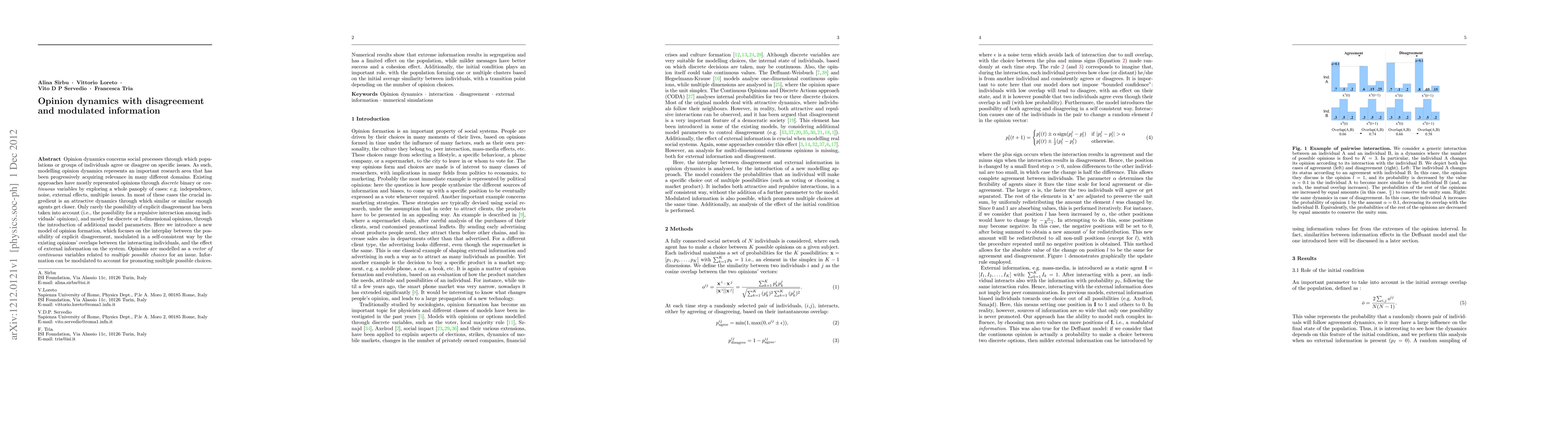 This paper introduces a new model for opinion dynamics that considers explicit disagreement modulated by opinion overlaps and the influence of external information. It finds that extreme information leads to segregation, while moderate information promotes cohesion, with initial conditions significantly affecting the population's clustering.