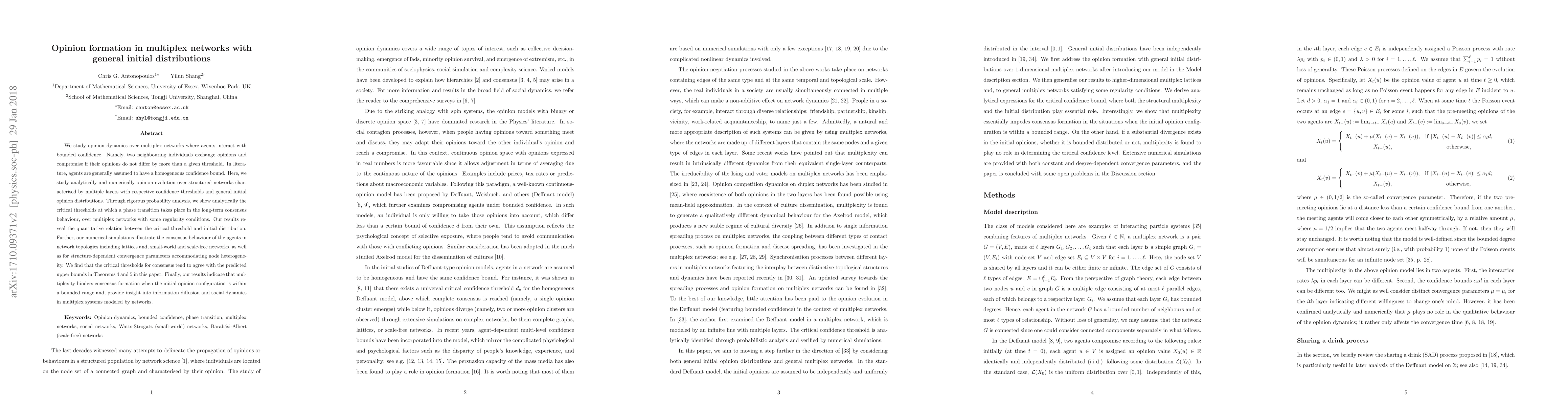 This paper analyzes opinion dynamics on multiplex networks with varied confidence bounds and initial opinions, revealing critical thresholds for consensus. Through analytical and numerical methods, it shows how network structure affects consensus formation, finding that multiplexity can hinder agreement under certain conditions.